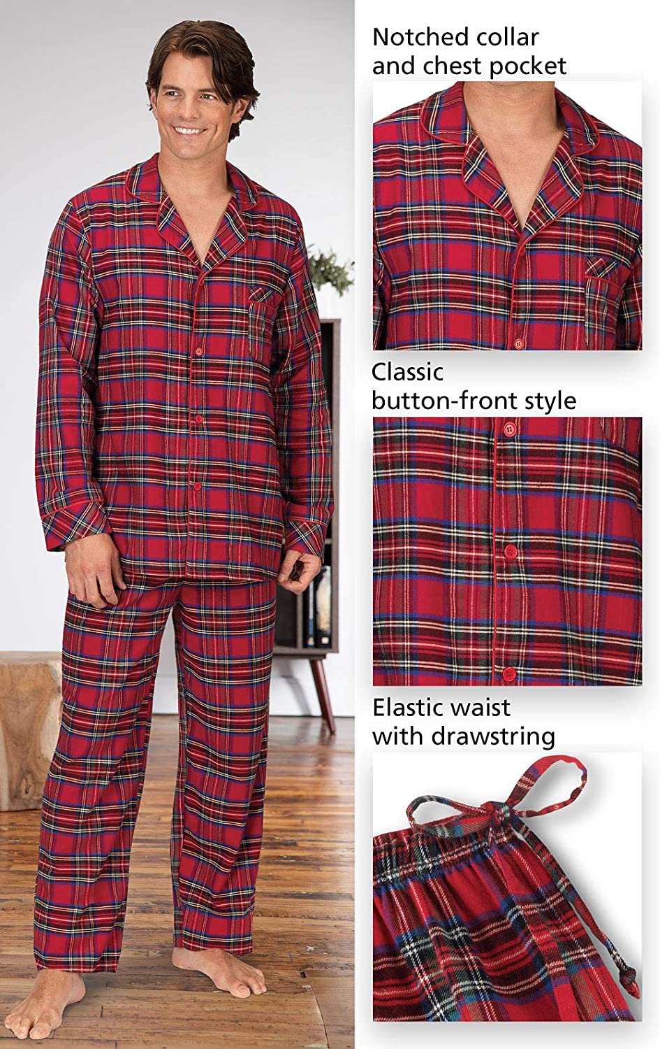 Classic styling - Designed to provide that sweet, old-school feel with a long-sleeved button-up top and matching full-length pants in time-honored classic plaid