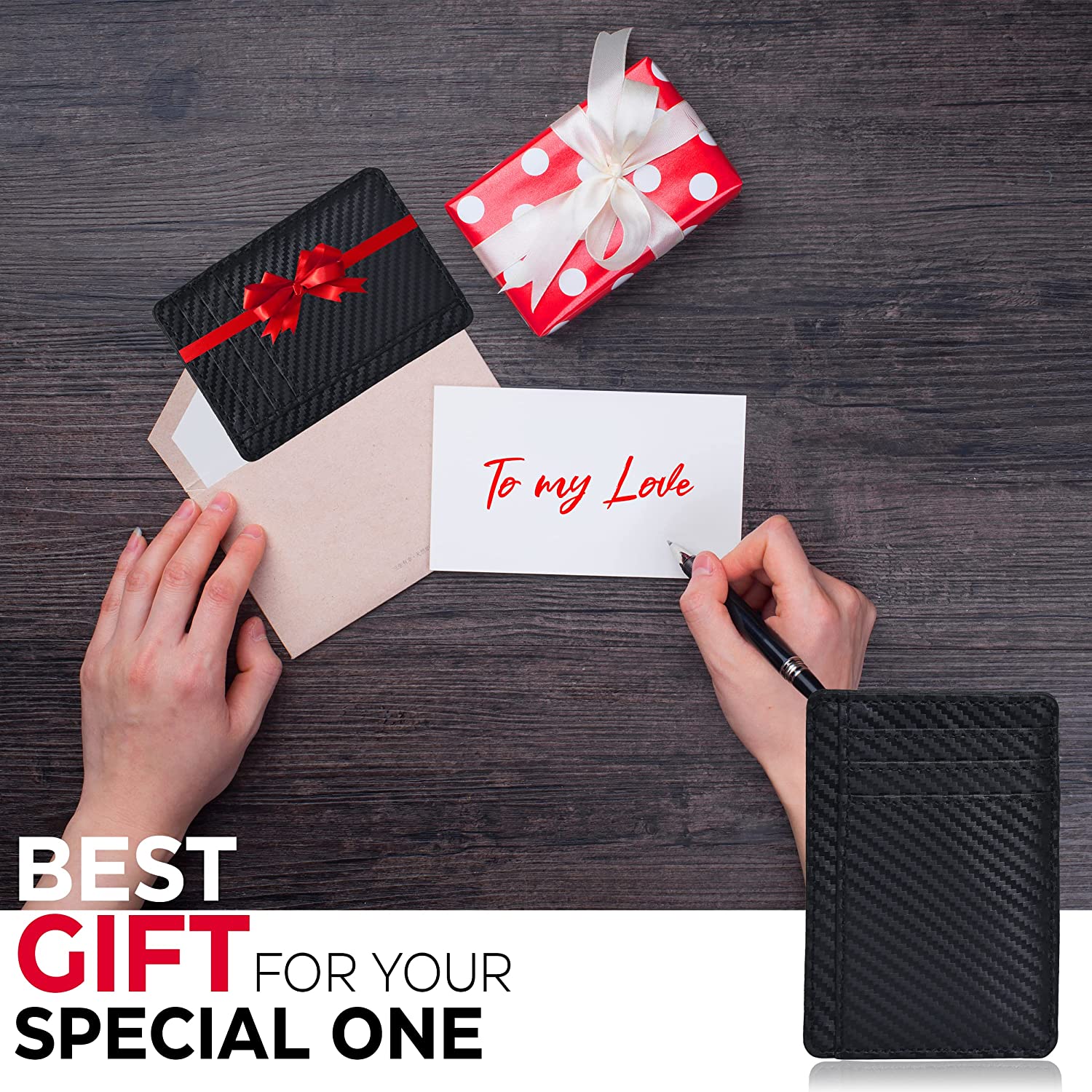 - ★PRACTICAL FEATURES : Comes in ONE_SIZE 4.4 x 3.7 x 0.4 inches. It has 5 Credit Card slots and 1 ID window, 1 Note compartment and 1 Extra Pocket for any documents you like. This wallet is unlike other wallet which has more than extra or less than required space.