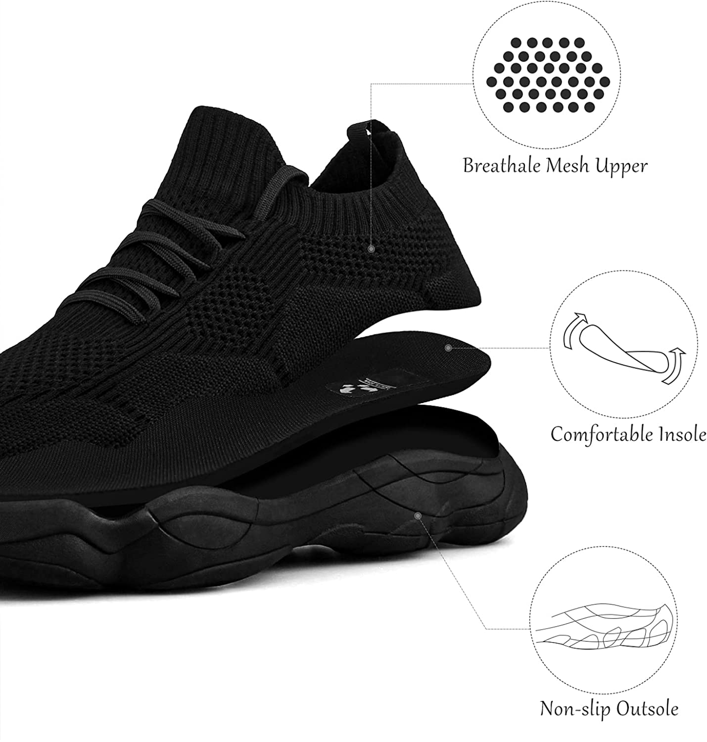 Durable Outsole - The outsole of sneakers is made of non slip EVA with high resilience and softness, which is produced extremely durable material, the anti-skid grooves on the bottom can increase traction with the ground to protect you from sliding.