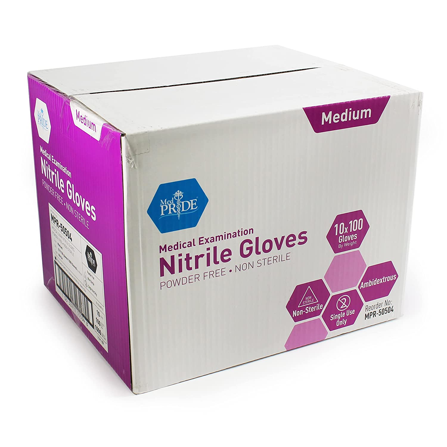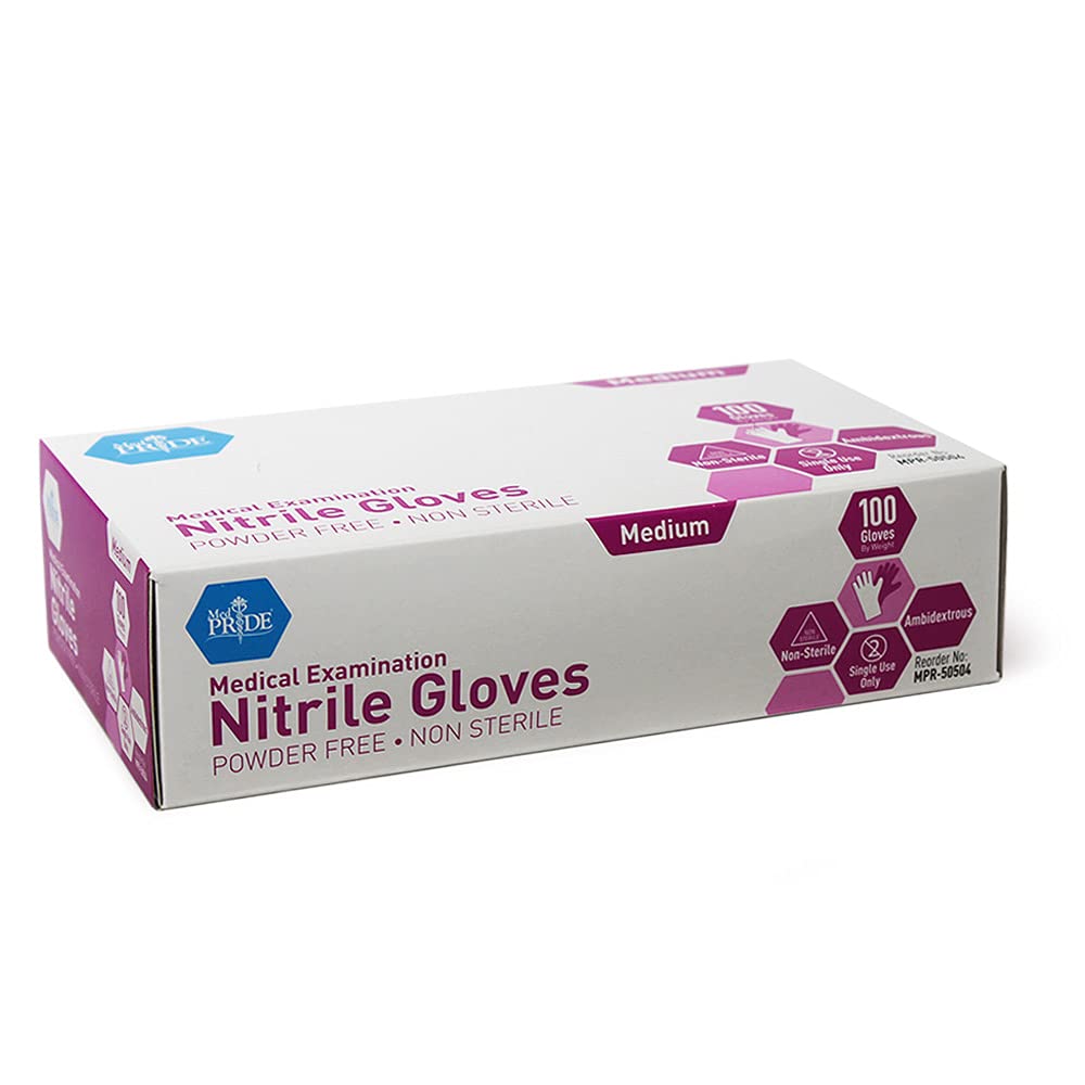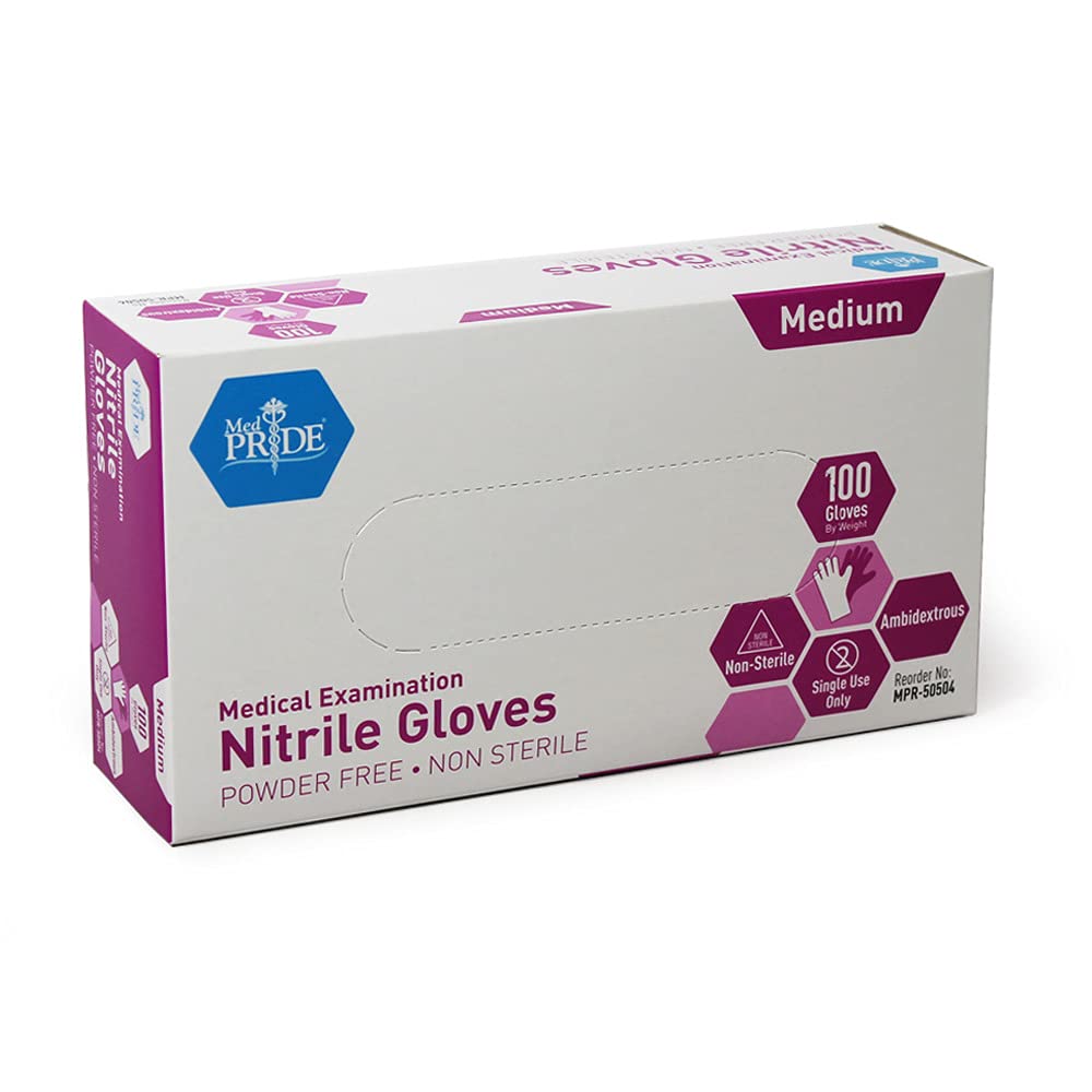 MedPride Powder-Free Nitrile Exam Gloves, Medium, Case/1000 (100 Count (Pack of 10))