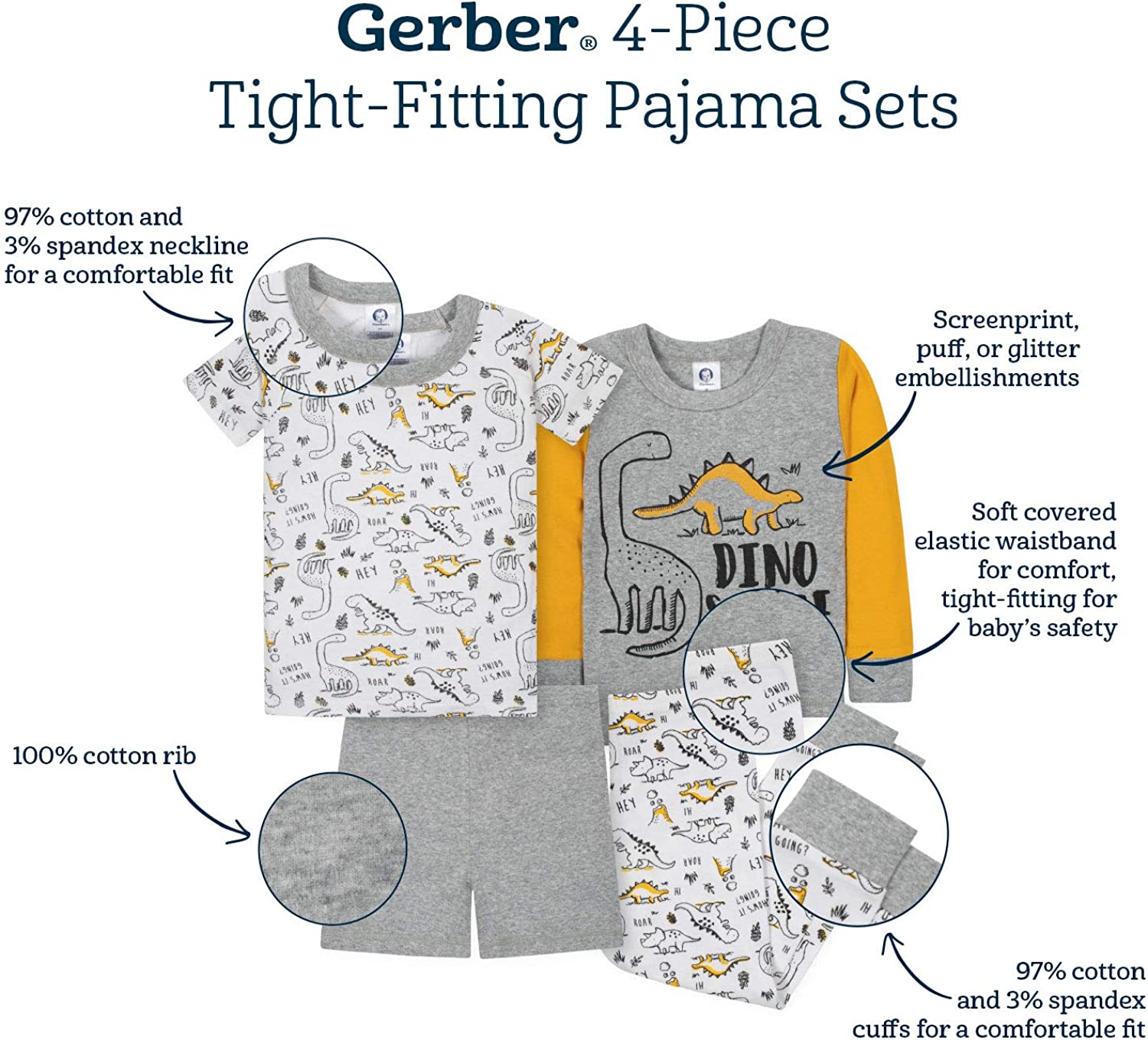 Gerber Baby Girls Toddler Snug Fit 4-Piece Pajama Set