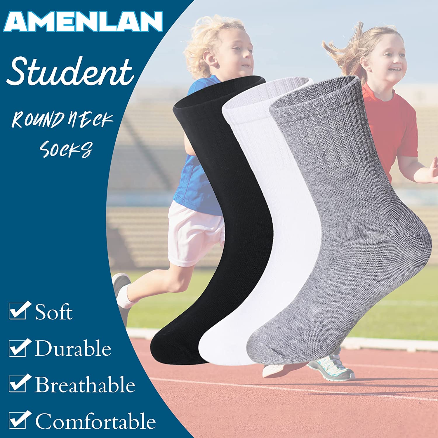 FIT MANY OCCASIONS- Multi purpose and practical, the socks can be worn both indoor and outdoor, they are suitable for many occasions, such as school commuting, playing sports, going camping, athletic, traveling and more. These crew socks are perfect for everyday wear and can be worn with a variety of outfits. Whether kids sporting sneakers, shoes, or boots, socks will work perfectly for a casual and sporty look. Matches with most outfits.