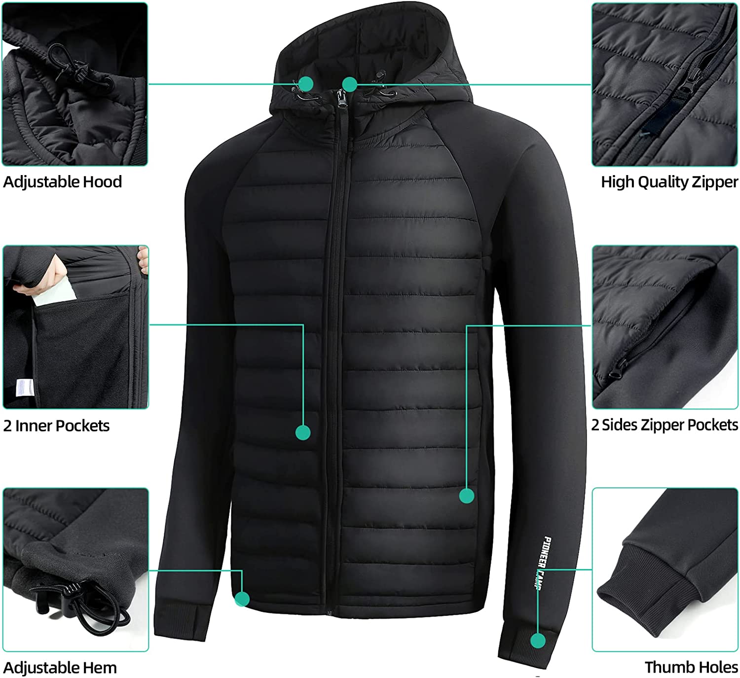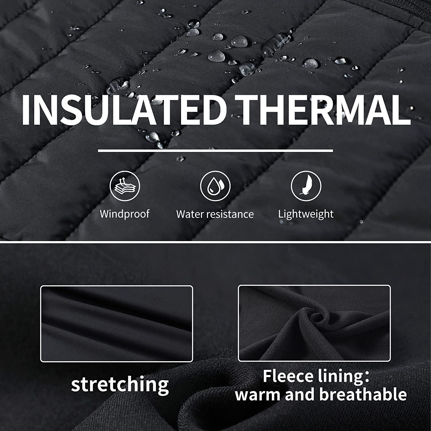 ?WARM & WATER RESISTANT: Hybrid design. Waterproof and windproof front parts with quilted panels sewn into to insulate cold air and retain warmth of core area. Stretching knitting materials on the side and back panels are highly breathable, wicking away moisture quickly and can keep you dry. Brushed fleece lining provides extra warmth.