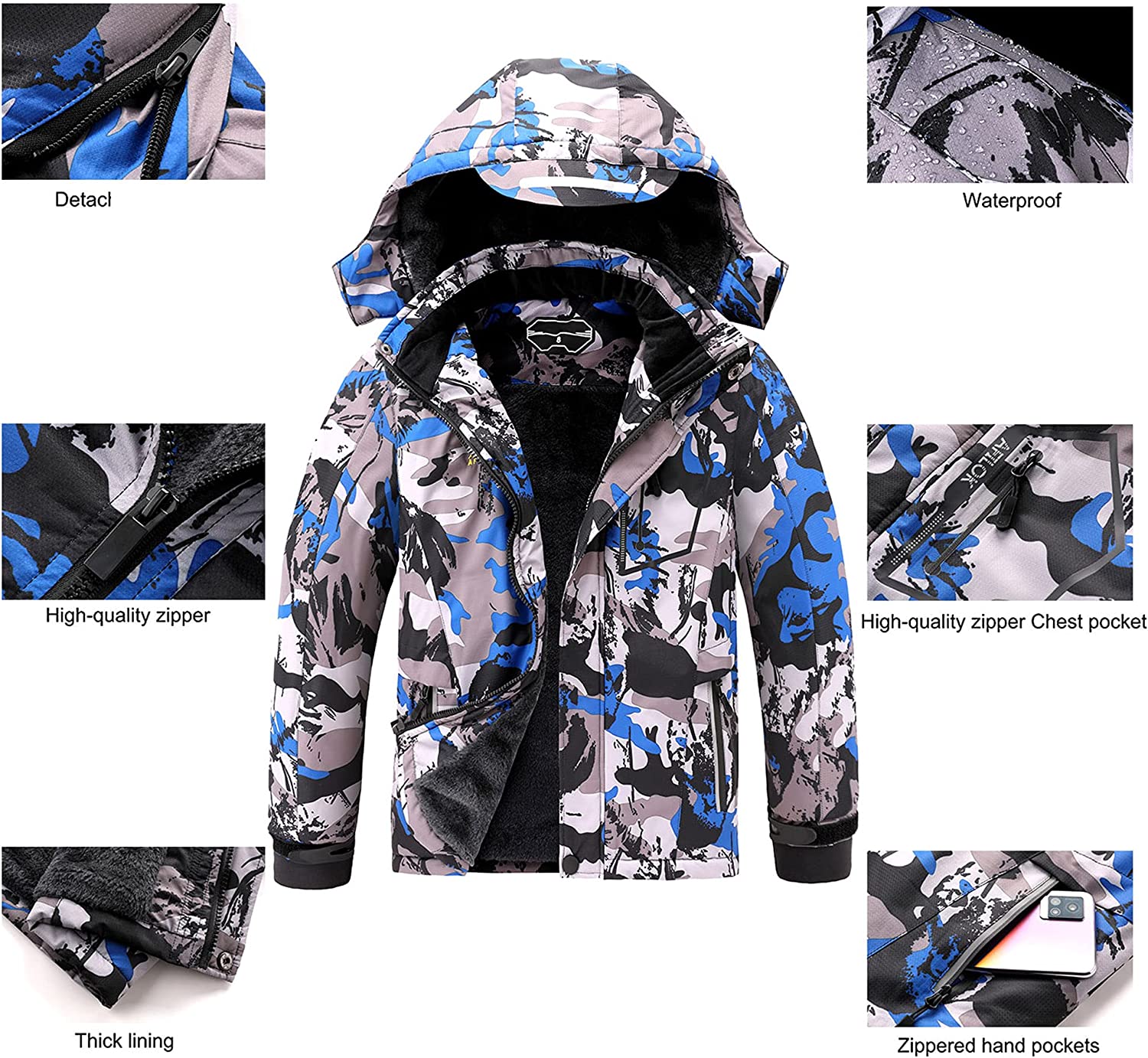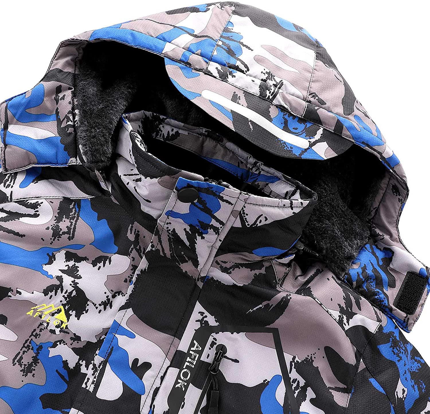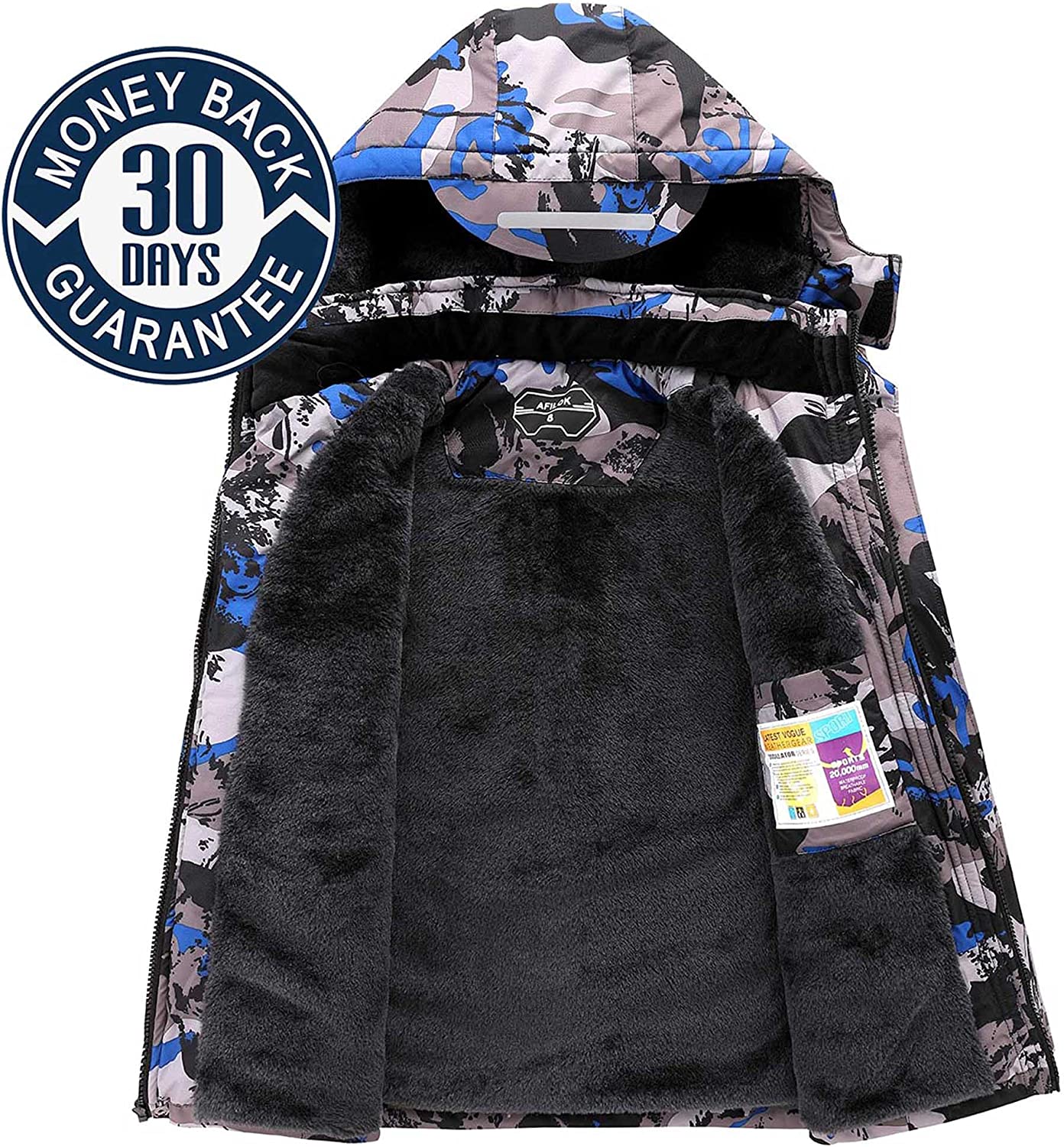 AFILOK Boy's Ski Jacket Waterproof Breathable Kids Fleece Lined Windproof Hooded Snowboard Coats