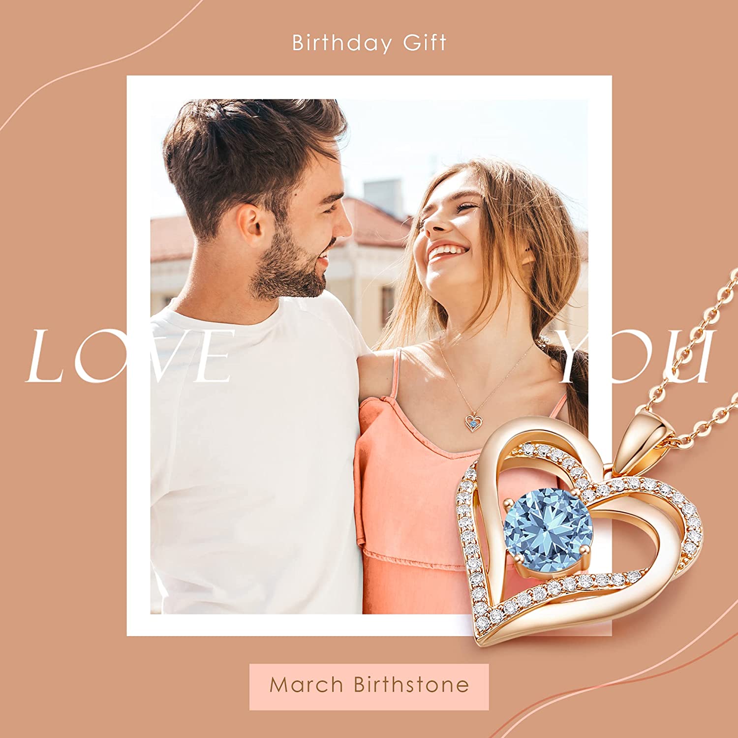 LOUISA SECRET Love Heart Birthstone Necklaces for Women 925 Sterling Silver Rose Gold Pendant Forever Diamond Jewelry Valentine's Day Christmas Anniversary Birthday Gifts for Wife Girlfriend Mothe