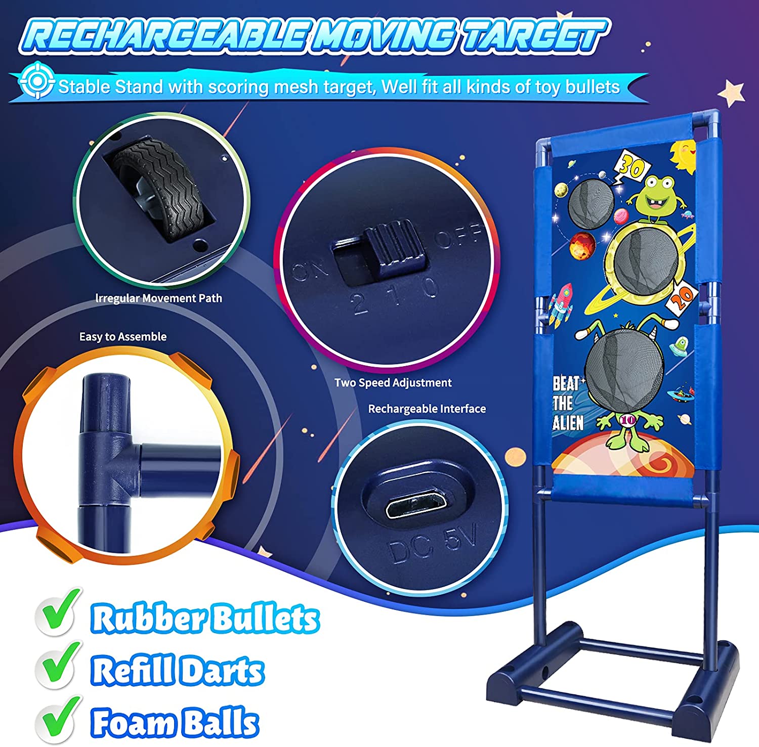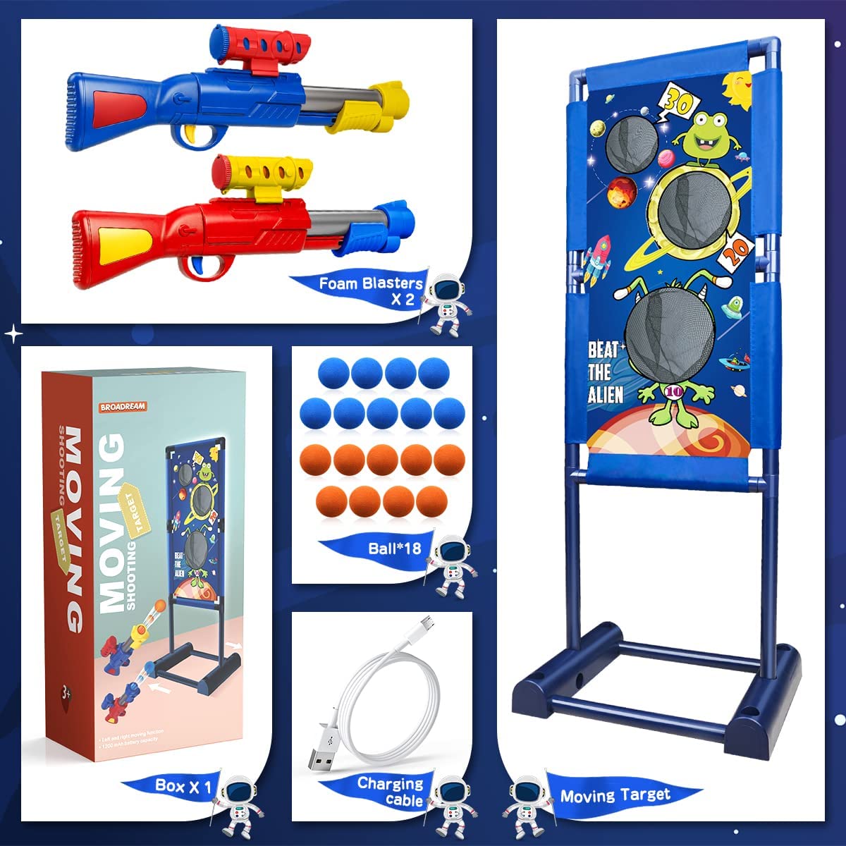 [Space-themed moving target] Enriches children's cognition and optimizes the shooting game experience. A very exciting and creative shooter for any boy or girl aged 4 and up who loves sci-fi or outer space, loved by kids.