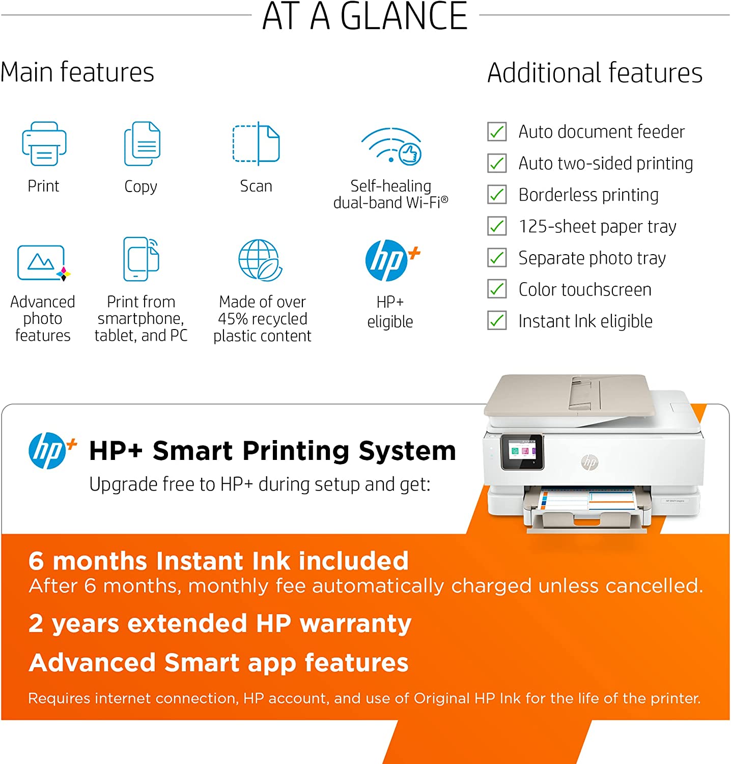 • INCLUDES FREE HP+ SMART FEATURES – Activate HP+ free to get advanced features for mobile printing, security, automatic updates and more. HP+ only works with an HP account, internet connection and Original HP Ink for the life of the printer.