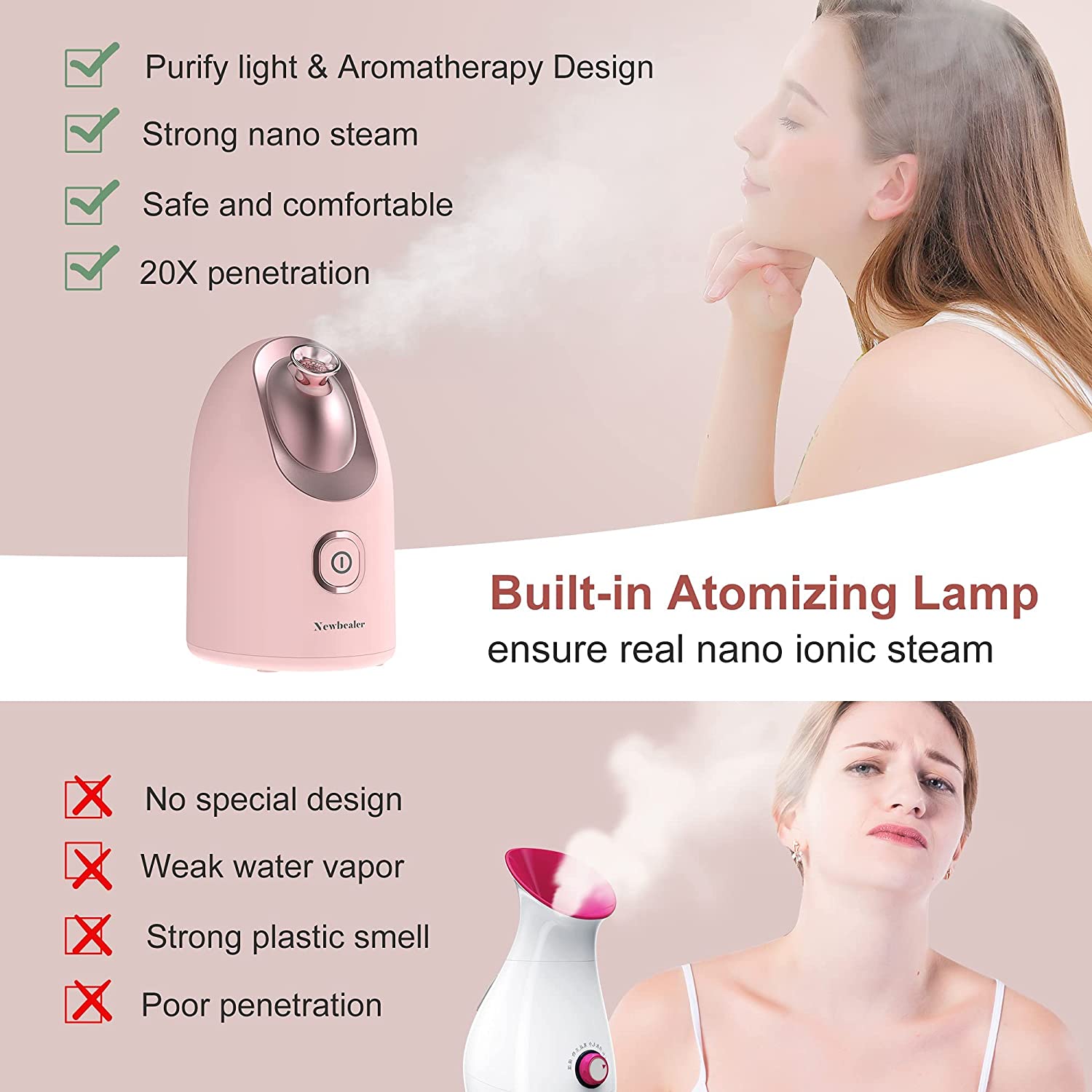 [Enhanced Technology] The facial steamer helps removing the dirt and impurities of your skin with the help of the soft nano steam combined with ionic water particles which is 20x more effective in penetrating the skin and is designed with an exclusive built-in atomizing lamp. The steam can be absorbed by your skin in the purest and effective condition.