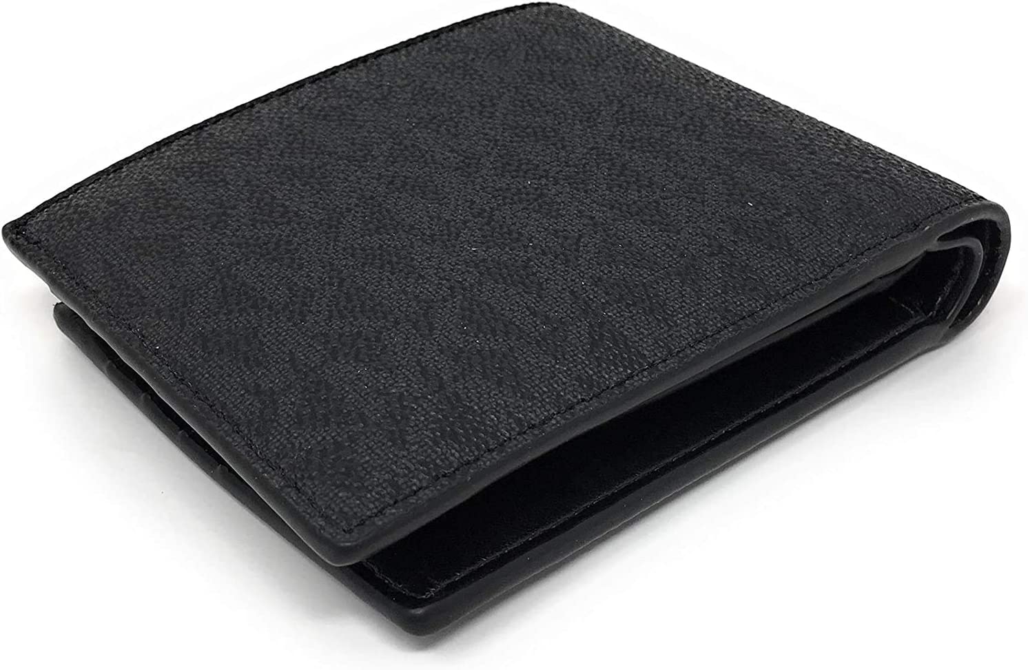 Men's bifold wallet with subtle monogram print textured PVC coated canvas exterior