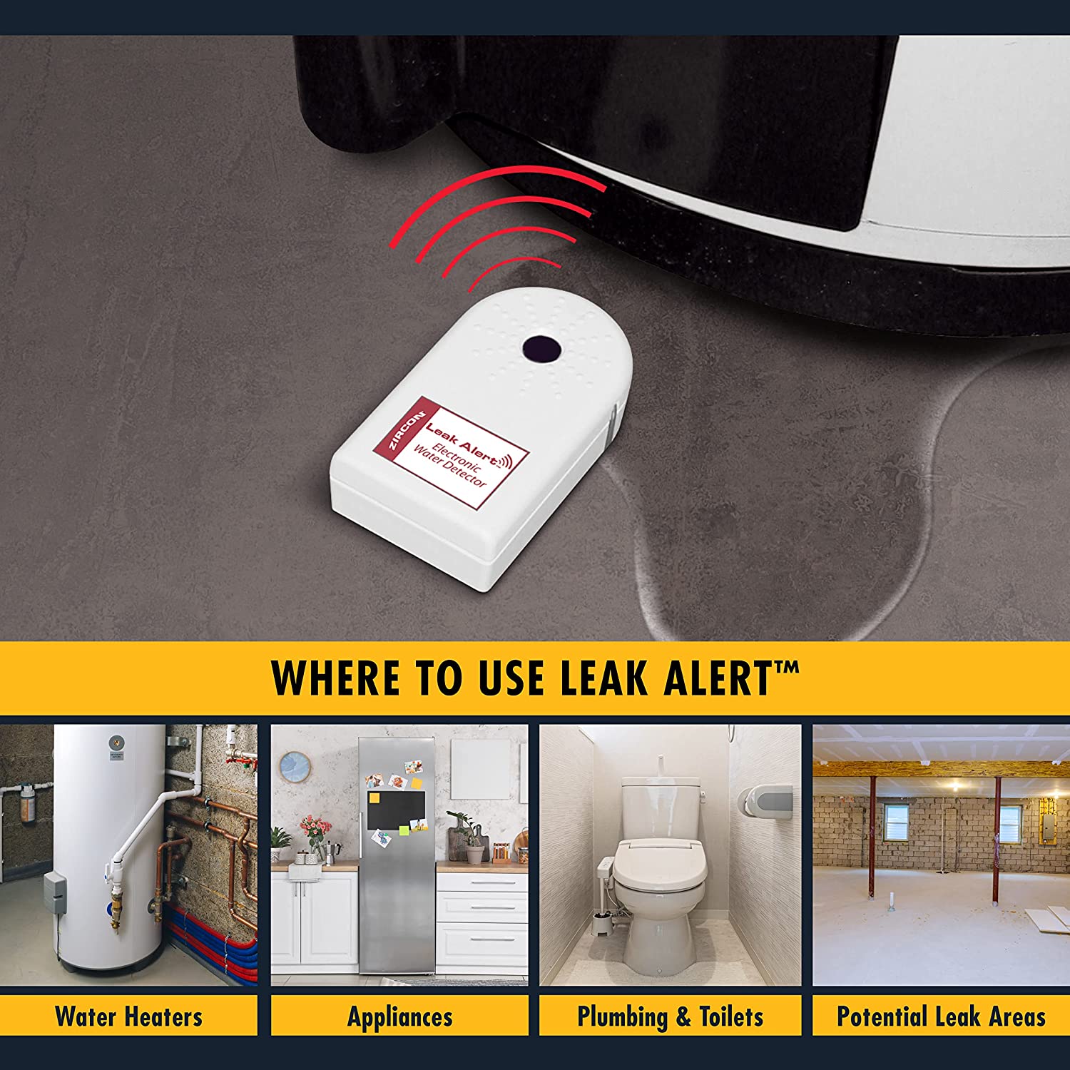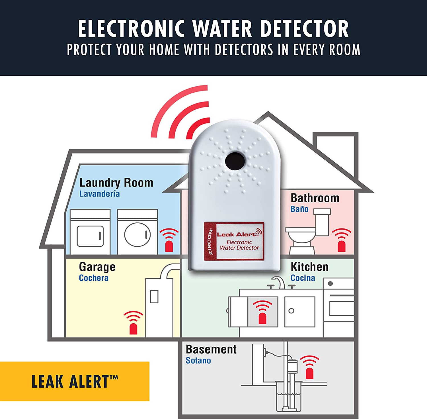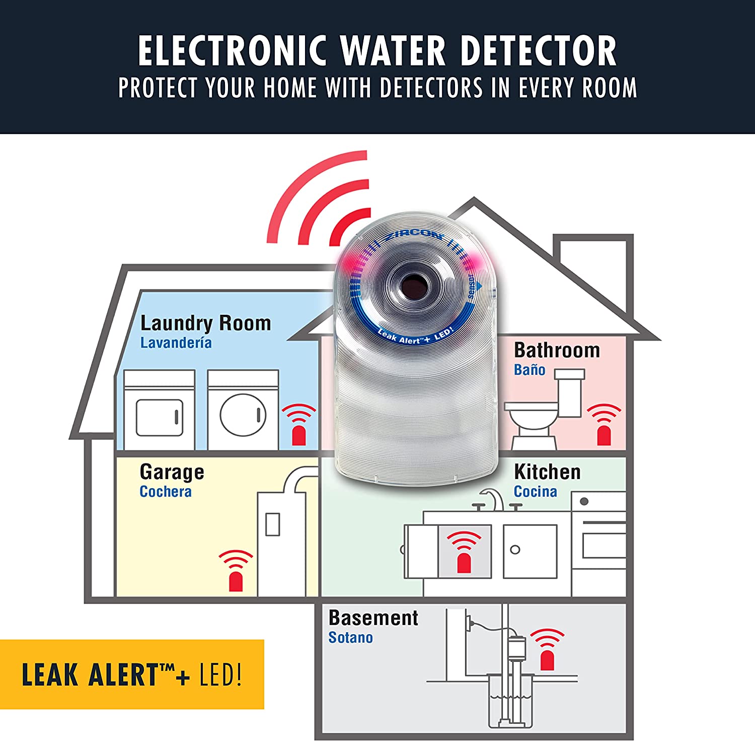 • Place in basements, bathrooms, kitchens, or wherever there is a potential for leaks. Common placements of the leak detector are near sump pumps, water heaters, washing machines, dishwashers, under sinks, etc