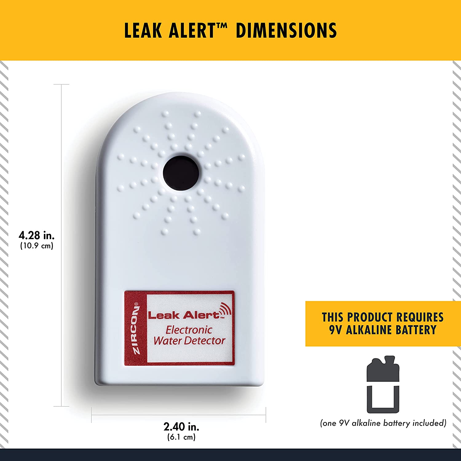 Zircon Leak Alert Water Leak Detector & Flood Sensor Alarm/Water Leak Sensor with Dual Leak Alarms 90Db Audio/Battery Powered (2 Pack) Batteries Not Included (72311) White