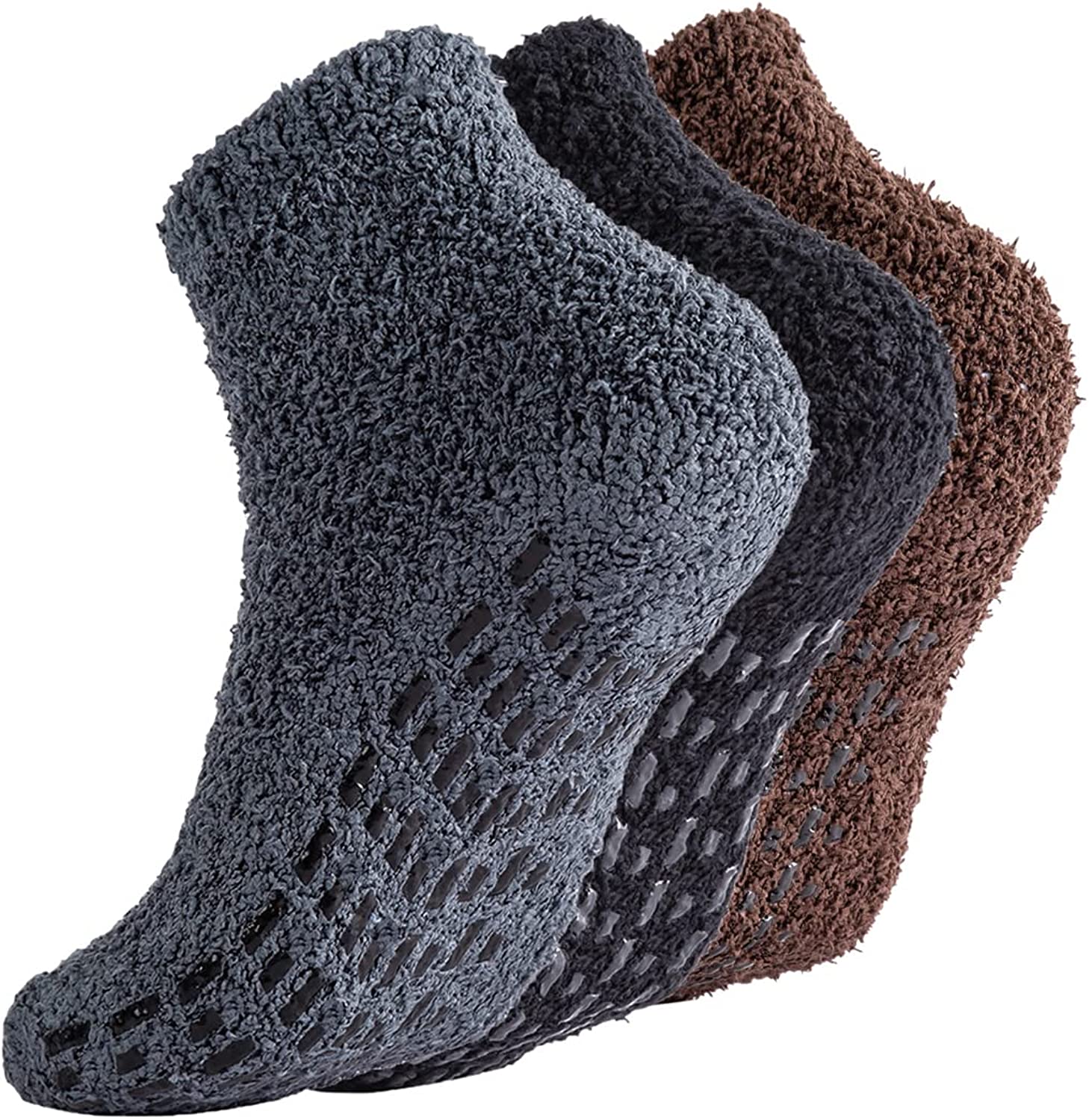 [Material]: High Quality polyester and spandex, make our fuzzy socks ultra soft, cozy, warm and stretchable. Giving your feet maximum coziness and keeping you warm in cold days, fluffy socks protect your toe, ankle and sole, Keep enough body temperature to make exercise safer. Machine Washable.
