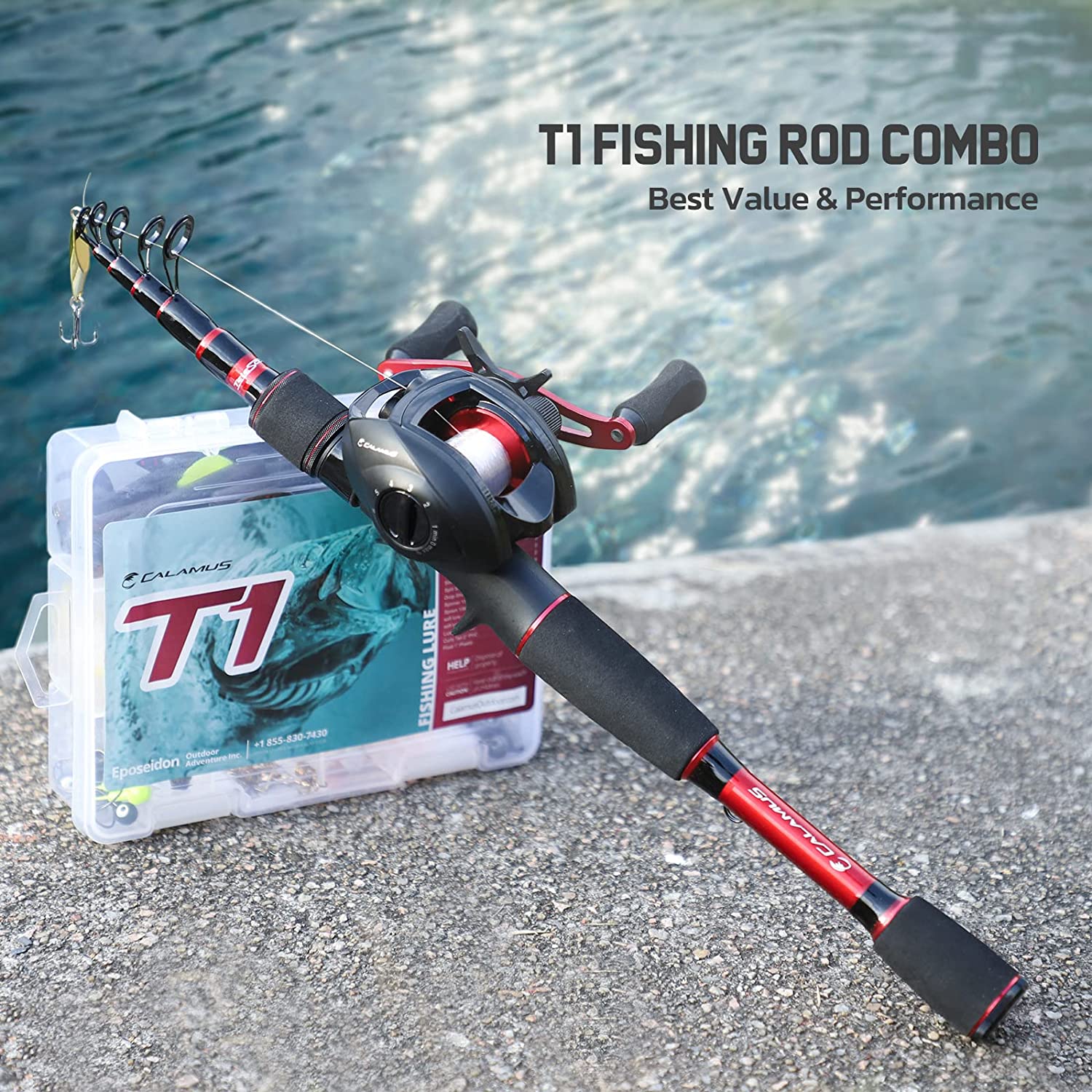 Calamus T1 Telescopic Fishing Rod and Reel Combo, Ready-to-go Fishing Gear Set with Fishing Line, Lure Kits & Accessories and Carrier Bag for Freshwater & Saltwater