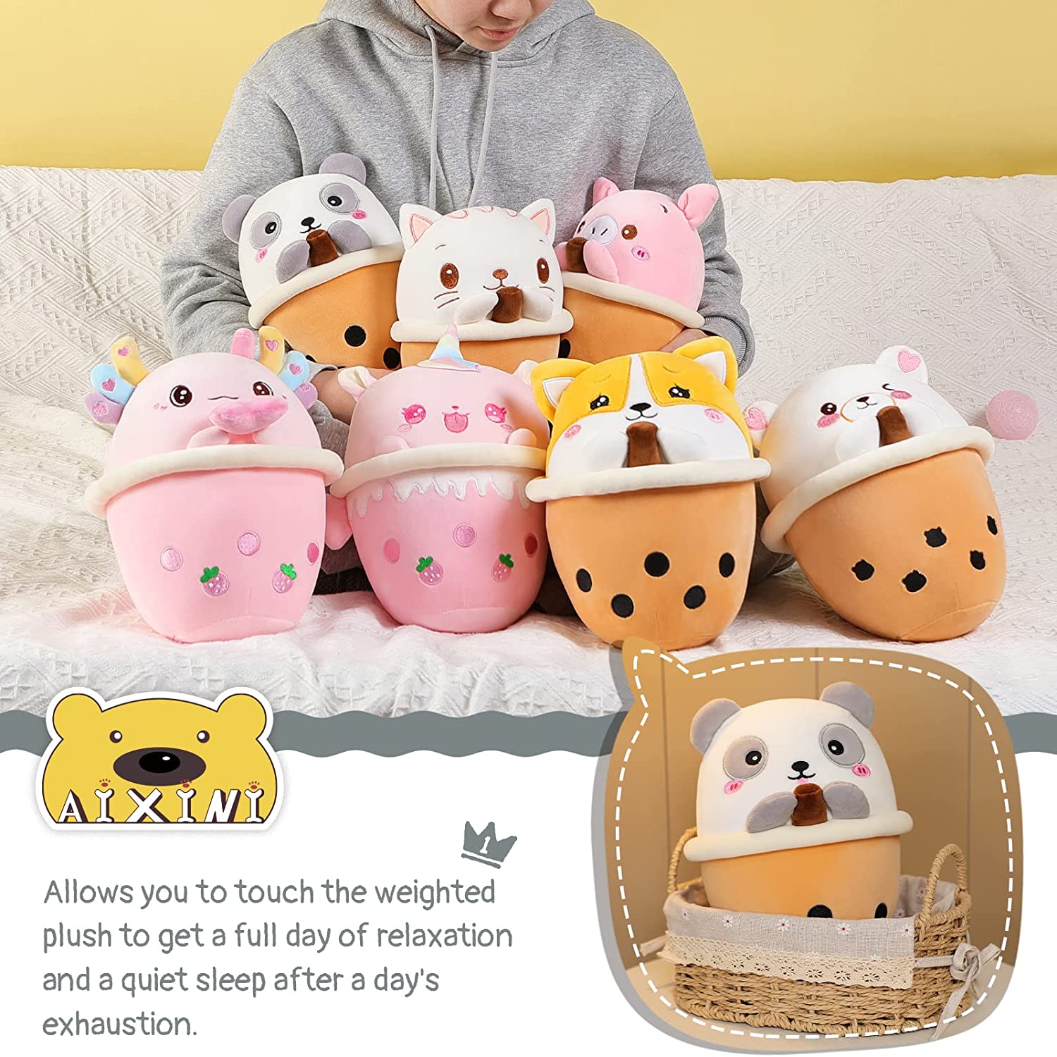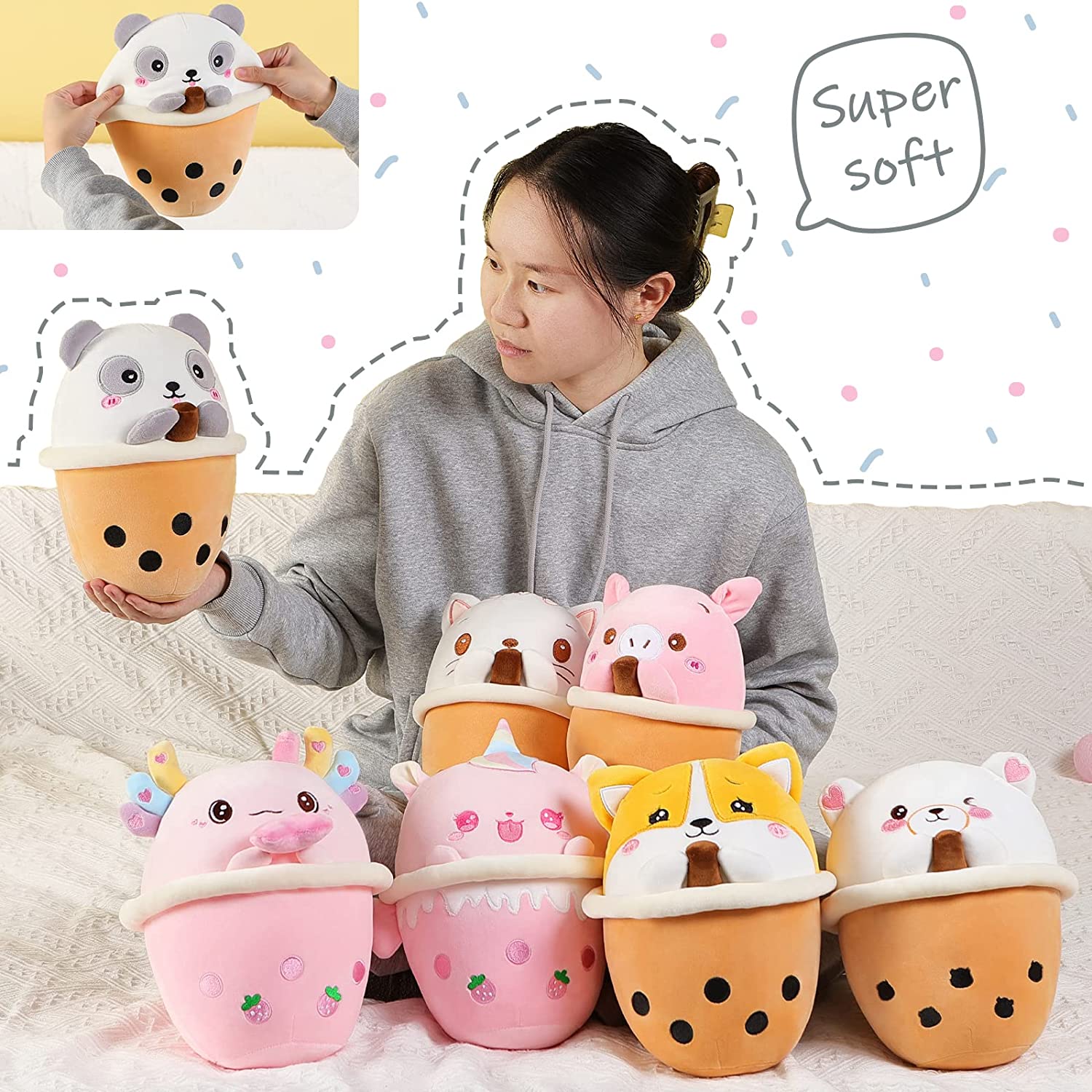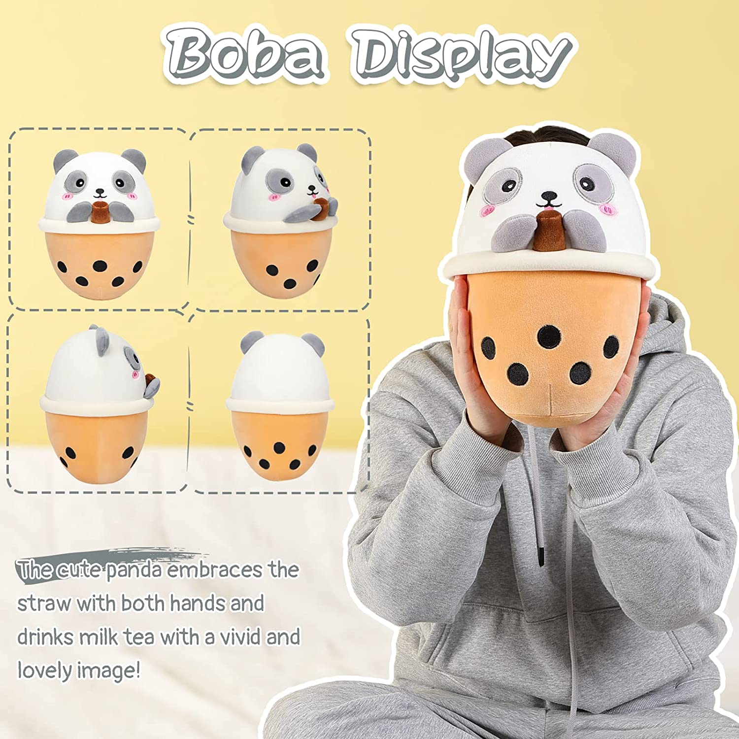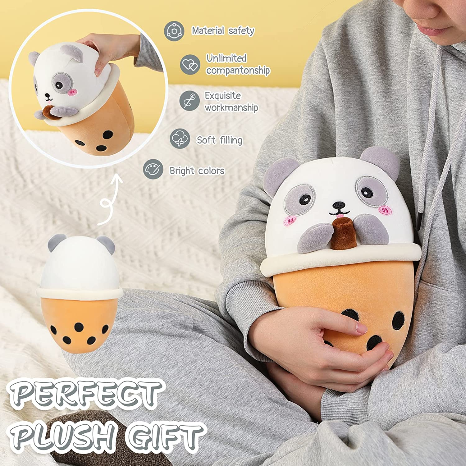 AIXINI Panda Boba Plush 10 inch Bubble Tea Stuffed Animal Soft Kawaii Plushie Toy
