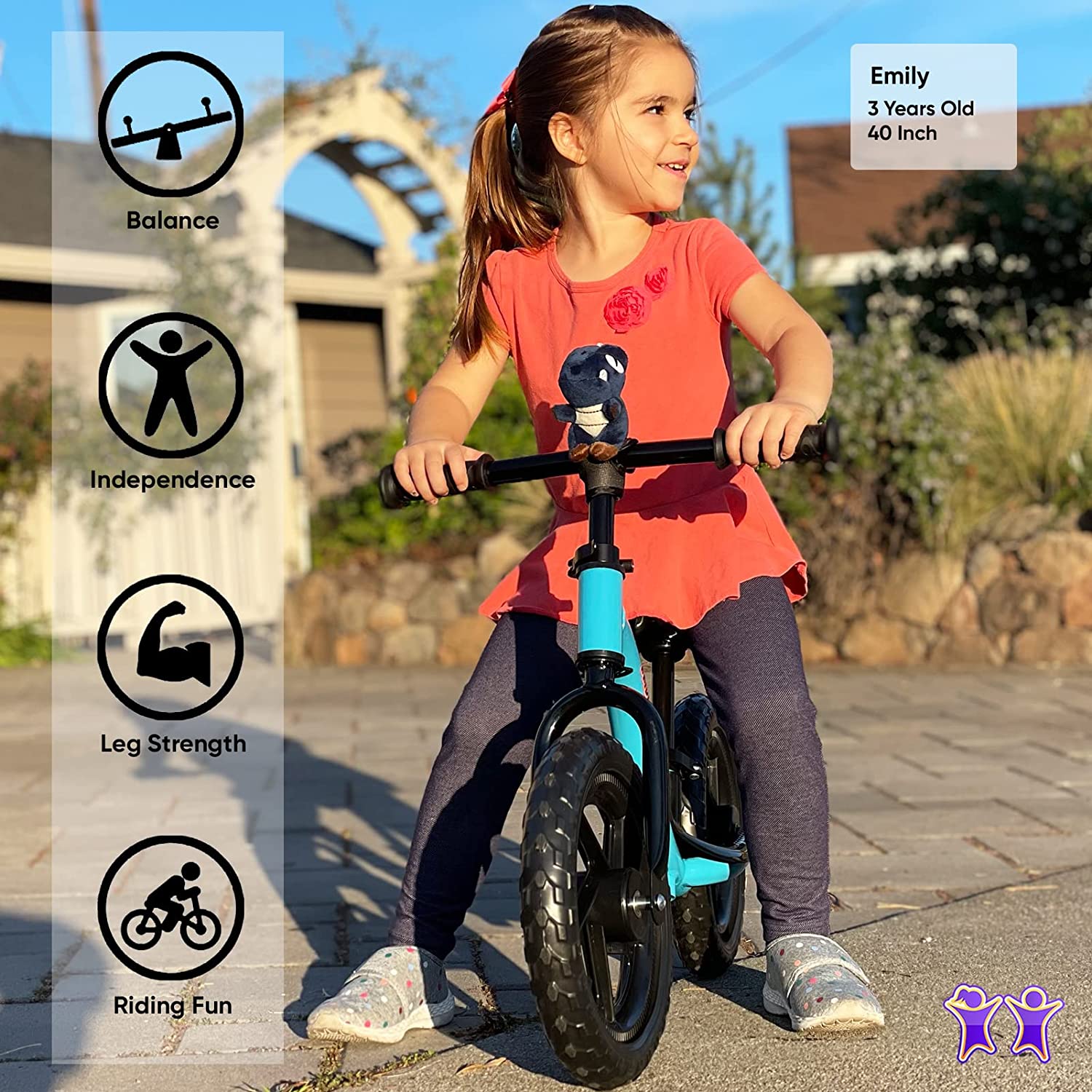 • CUTE AND CUDDLY STUFFED ANIMAL – Each balancing bike also comes with a small stuffed animal that becomes the perfect riding buddy. You can choose from three different animal friends including a unicorn, or tyrannosaurus rex.