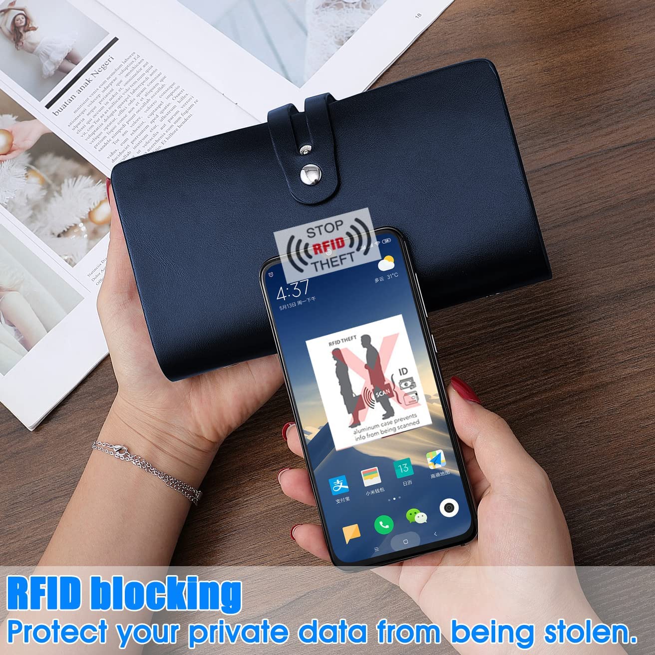 Romozi RFID Credit Card Holder, Leather Business Card Organizer with 96 Card Slots, Credit Card Protector for Managing Your Different Cards and Important Documents to Prevent Loss or Damage (Blue)
