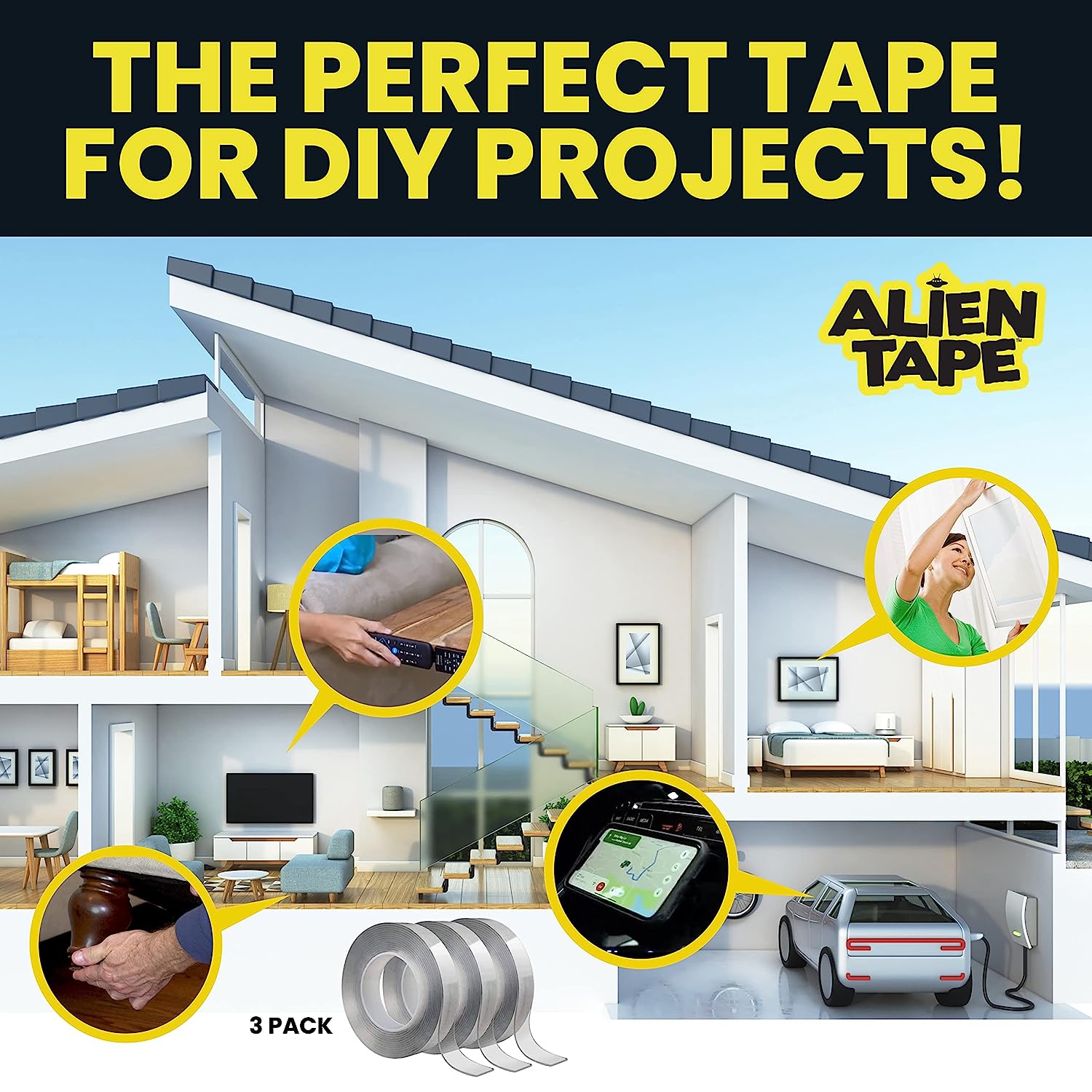 Alientape Nano Double Sided Tape, Multipurpose Removable Adhesive Transparent Grip Mounting Tape Washable Strong Sticky Heavy Duty for Carpet Photo Frame Poster Décor As Seen On TV (1 Roll)