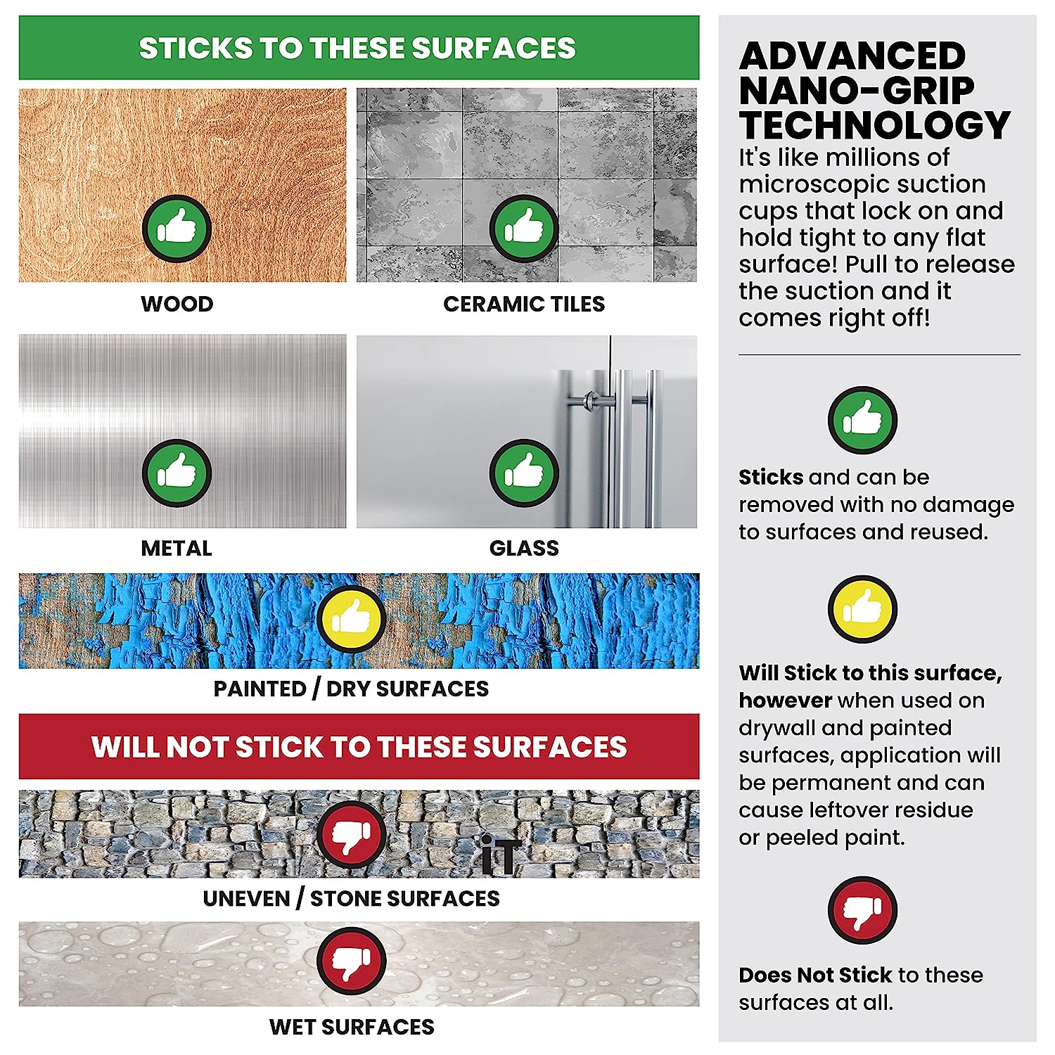 • SUPER STRONG ADHESION Double-sided acrylic tape with nano tech is ideal for mounting purposes. High adhesion capacity allows mounting on metal, plastic, aluminum, or glasses surfaces. Warning: Not for use on dry-painted surfaces.