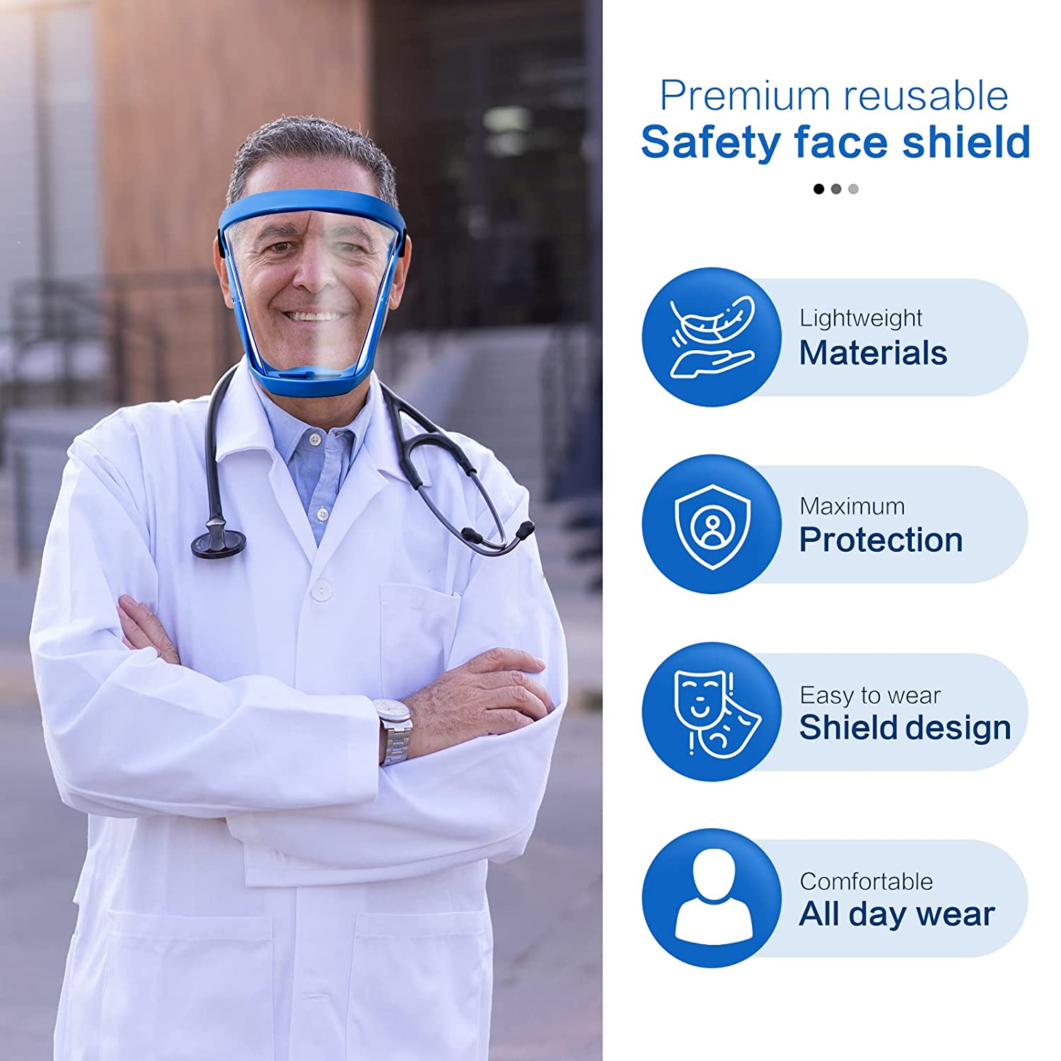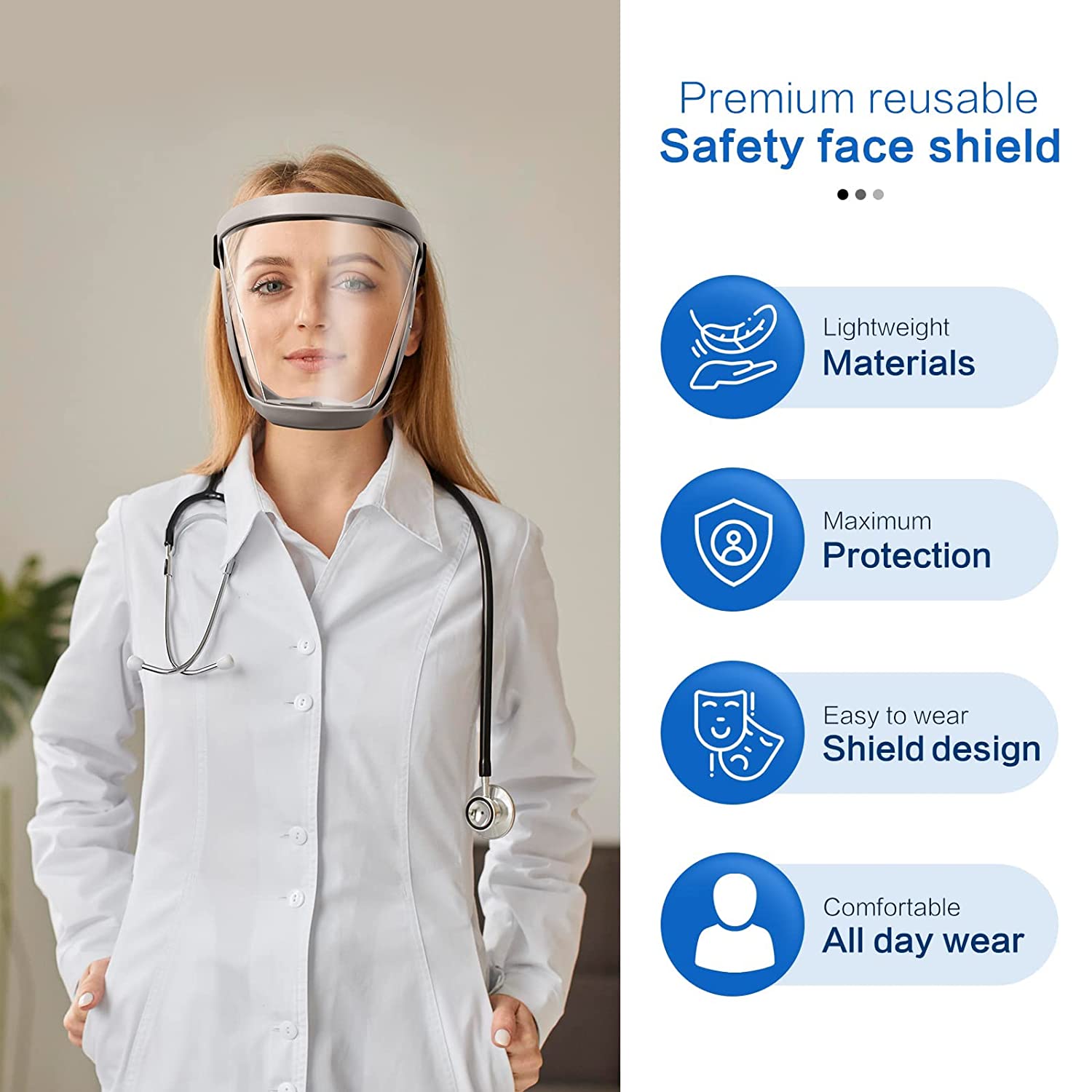 • √【Full Face Shield】--Its comfortably with most goggles and respirators; 100% dielectric (no metal parts); meets ANSI Z87 and CSA Z94.3 standardsLarge area from the eyebrows to the chin to protect against foreign aggression,Full Facial Protection from droplets, saliva,splash,oil and dust.
