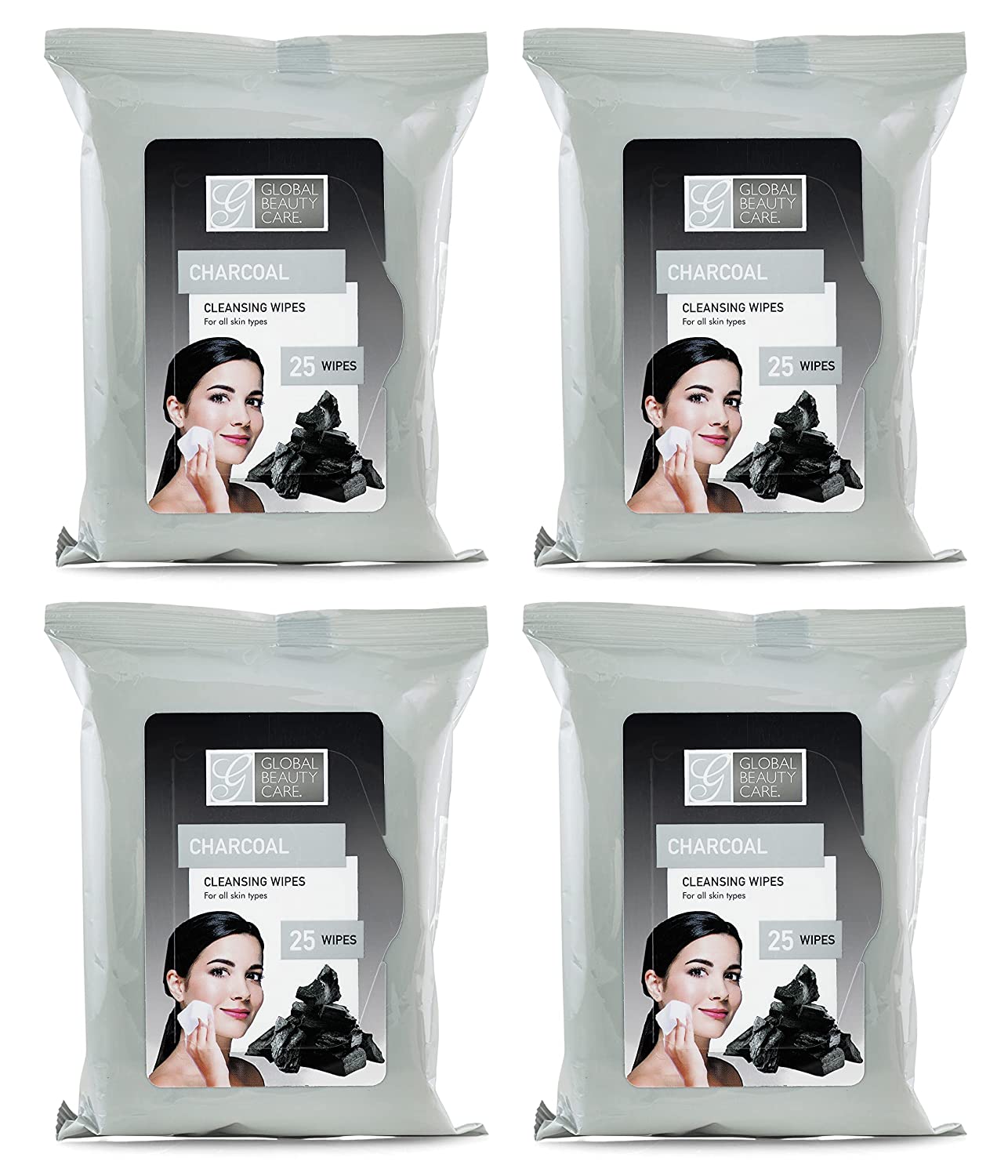 Global Beauty Care Bulk Cleansing Wipes Premoistened 4 Pack of Charcoal Cleansing Cloths Makeup Removal Wipes - Great For Travel Toiletries - 100 ct.(4-Pack)