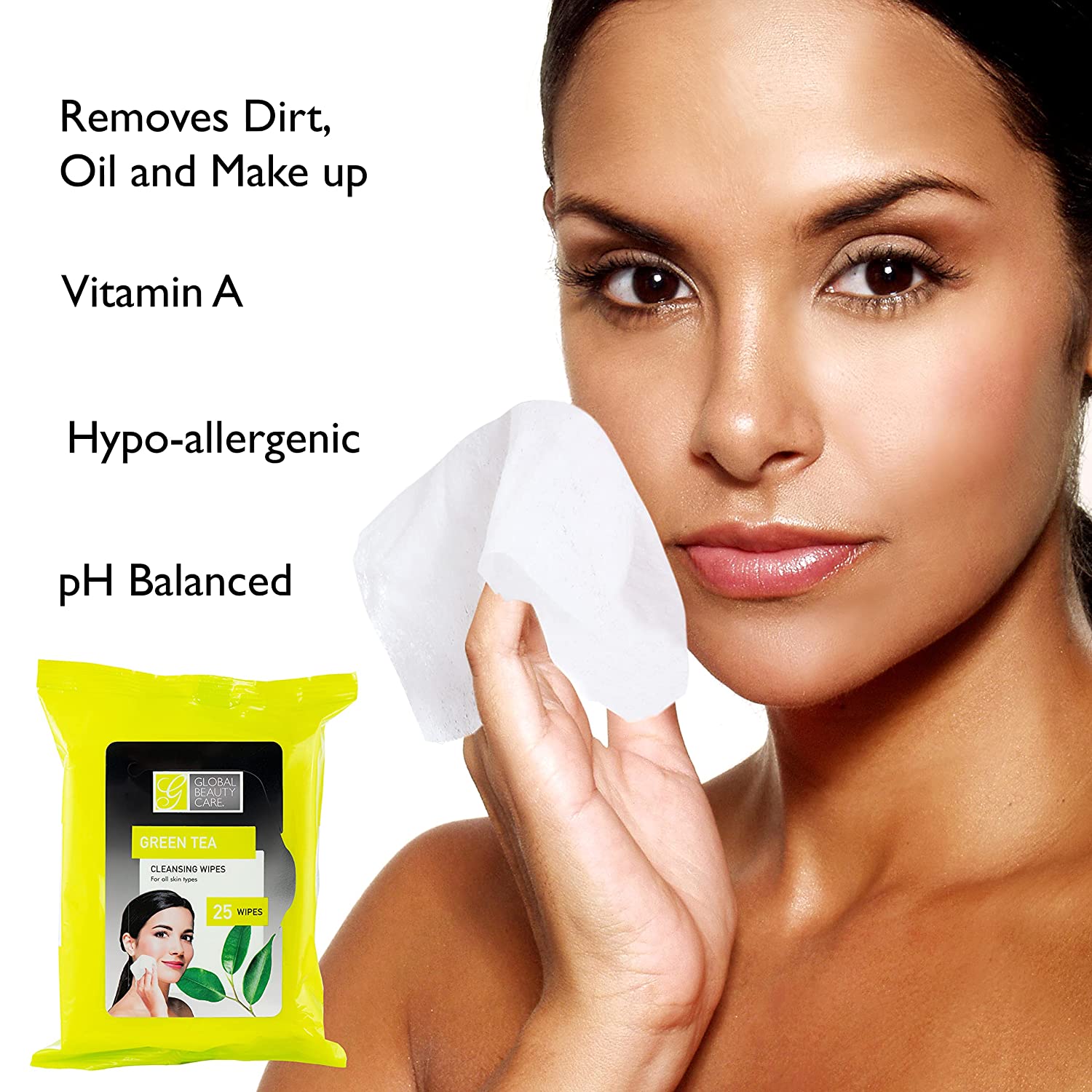 Global Beauty Care Bulk Cleansing Wipes Premoistened 4 Pack of Green Tea Cleansing Cloths Makeup Removal Wipes - Great For Travel Toiletries - 100 ct.(4-Pack)