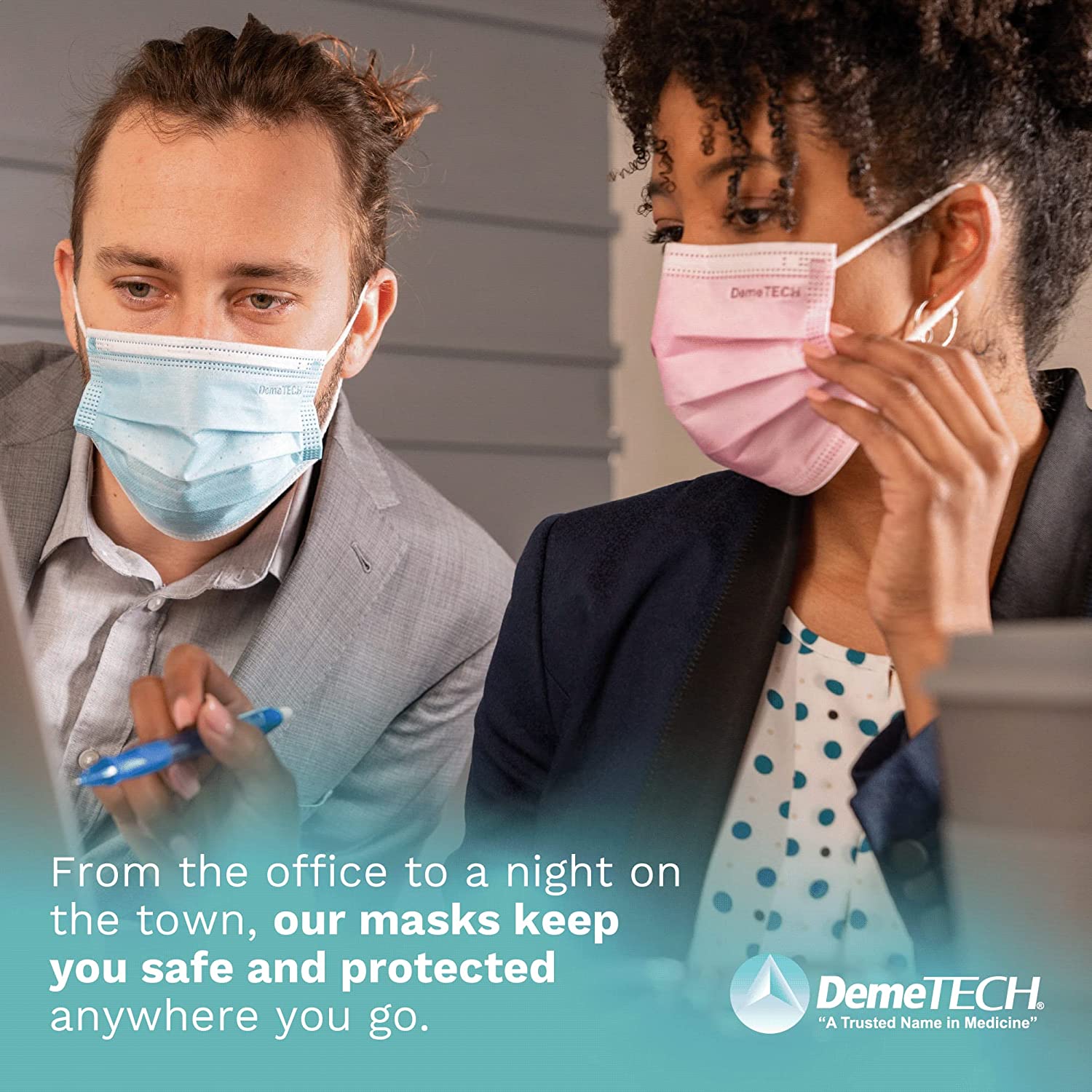 • SAFETY FACE MASK: At DemeTECH, your safety is our top priority. Each American-made face mask uses only the highest-quality materials. The ear-loop face mask slides over your ears to secure the mask to your face.