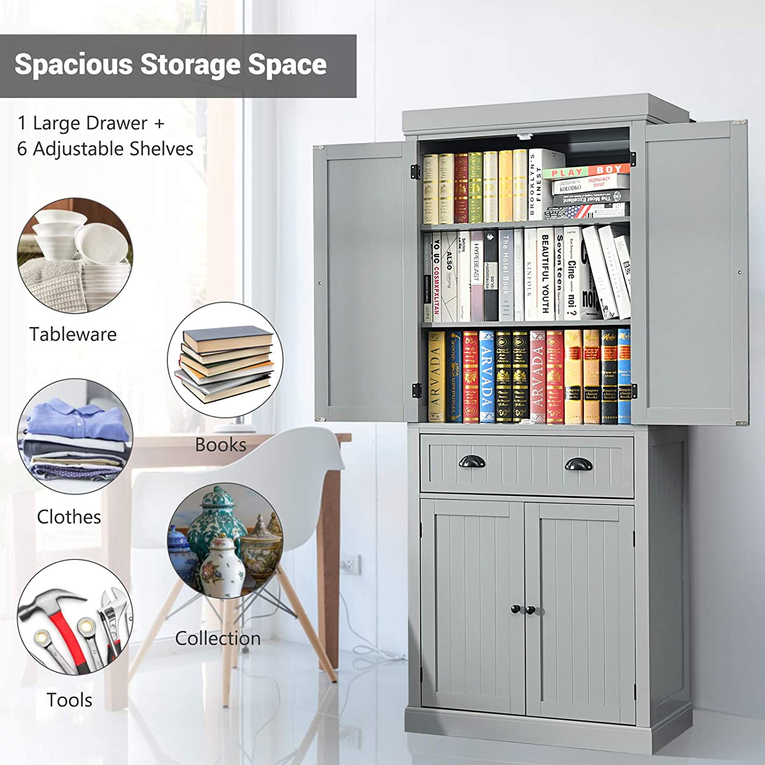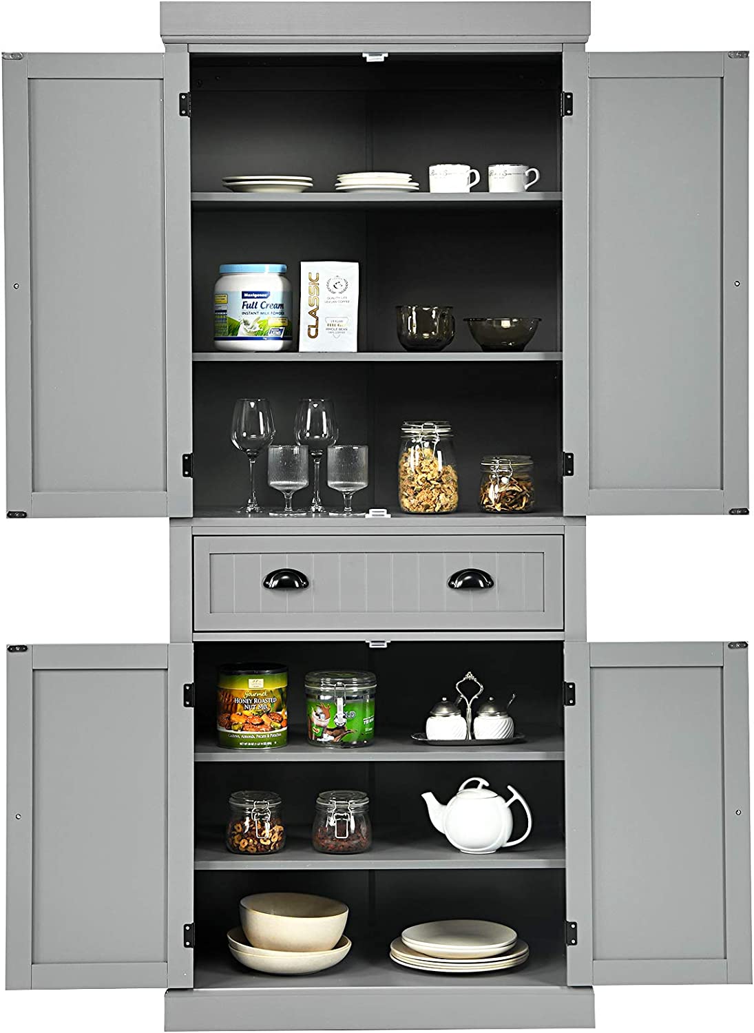 ⭐【72” x 30” x 16” Large Cupboard Cabinet】Measuring 72” x 30” x 16”, the practical storage cabinet offers you large storage space to display whatever you want. With its elegant design, you can place the pantry cabinet in your kitchen for seasoning bottles and dishes, bedroom for clothes, living room for books, as well as bathroom for towels.