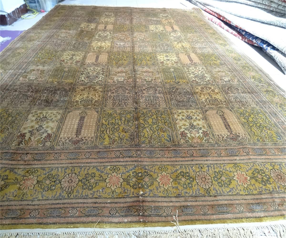 Promise: this Carpet is 100% hand knotted and is never produced by machine. If it is fake, we will compensate you $2000. There is only one piece of this handmade carpet. There is no such carpet that is 100% the same in the world. Only in this way, the carpet can be Auction 5-8 times the price after 10 years.This is great craftsman art Factory Promise