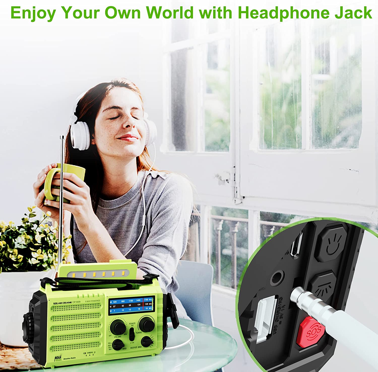 12> Wind up Radio with 3.5mm Headphone Jack - allow us to enjoy the radio without disturbing others.