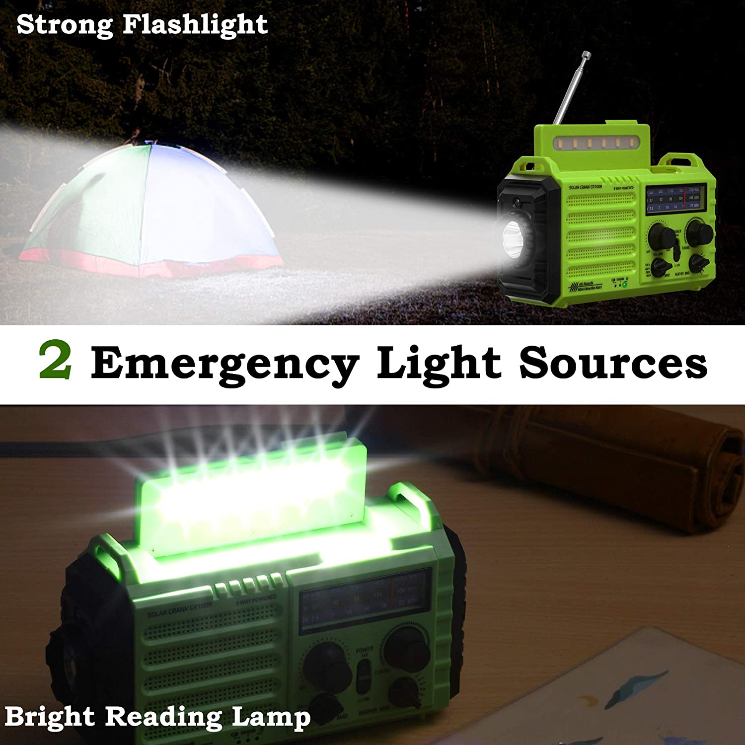 • 【Camping Flashlight & Reading Lamp】It’s a smart choice to have this rechargeable ????? ????? no matter for indoor or outdoor usage. Provides a 3W camping flashlight and 2.5W reading light, this battery operated radio is designed to light up your darkness when emergencies or bug out, flashlights for emergencies, emergency lights for home power failure.