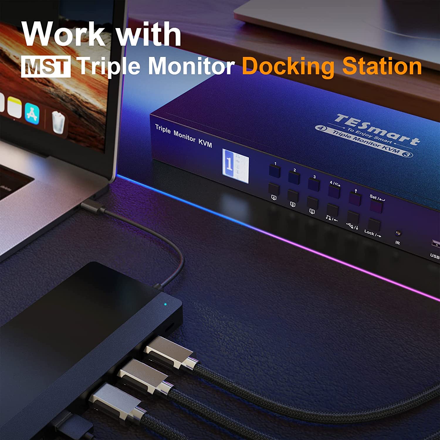 • 【Work with MST Triple Monitor Docking Station】 Don't worry about not having enough ports on Laptops. You can match the MST docking station with three outputs to achieve triple monitor function. Make sure to use reliable adapters if needed to avoid display issue.