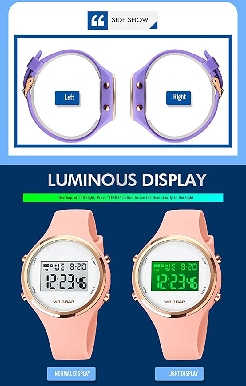• Fashionable female digital watch, suitable for people who like to exercise, it can be used for outdoor and indoor sports or daily leisure use.