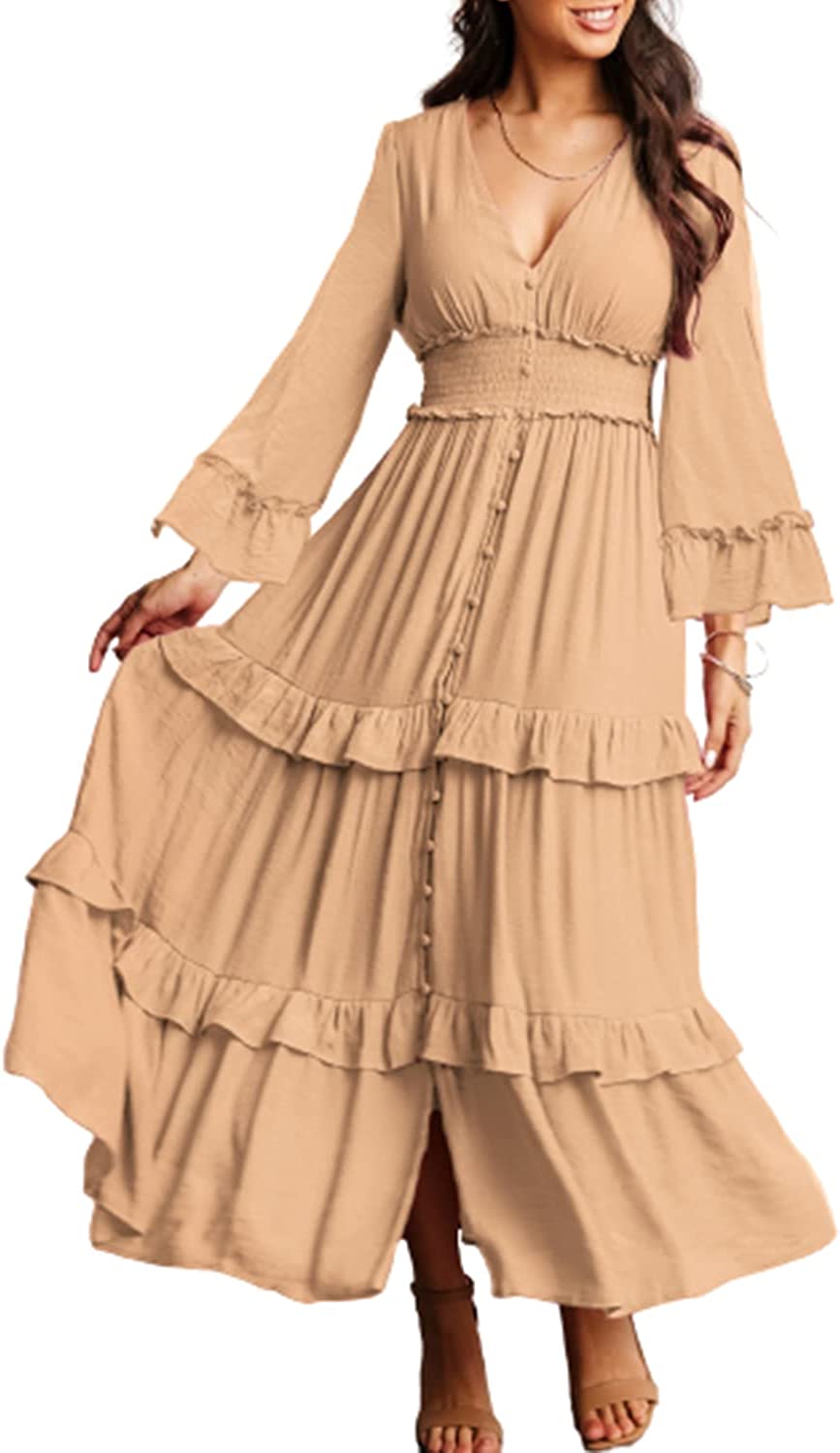 • ?Style -Maxi Dresses for women Summer, Casual Summer Beach Boho Long Dresses,Soft stretchy high waist Dress,Flowy Long Dress,Elegant V neck Empire Waist pleated Party Dress,Maternity maxi dress.Suitable for Spring,Summer and autumn easy to carry out for many occasions-beach/casual/party/evening/wedding/home/Holiday ect