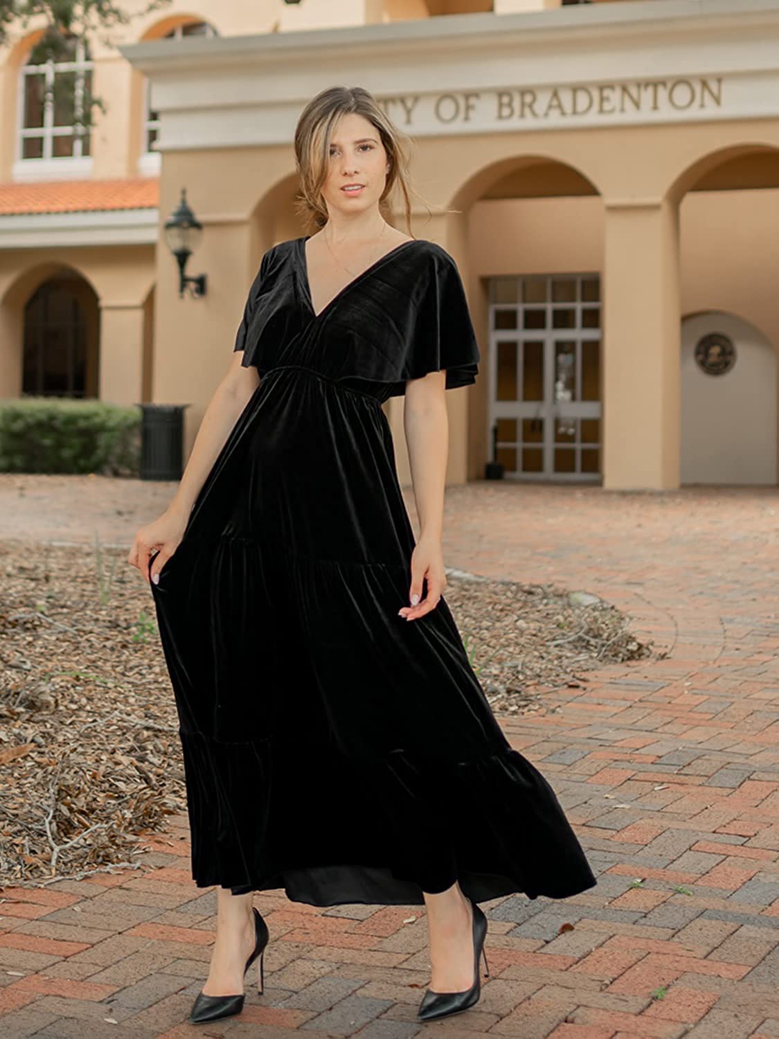 • ?The Boho Dress Features - Sexy V Neck Short Sleeve Maxi Dresses ,Floral Print,Lace Ruffle,High Waist,Elastic in the waist to make a comfortable fit,Slim Fitted,roomy for your tummy/hips,high waist and Flowy hem design,Floor length,Maternity maxi dress