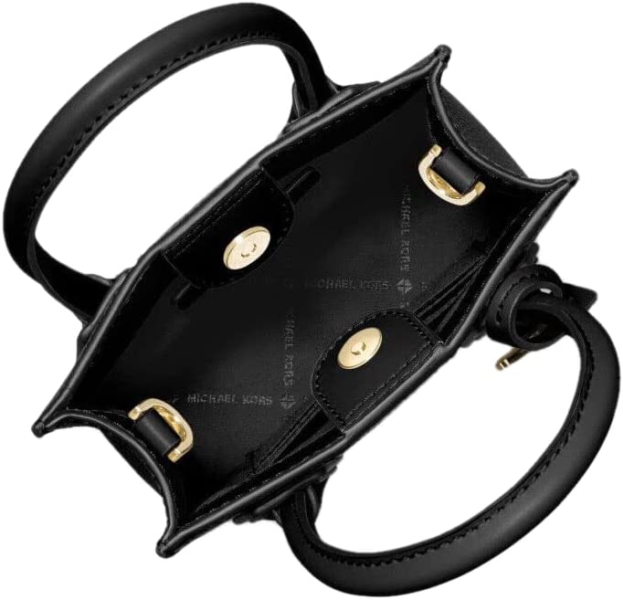 Michael Kors Mercer Extra-Small Pebbled Leather Crossbody Bag With Gold-tone hardware Snap fastening, Handle drop: 3”, Adjustable strap: 20.5”-24”, 100% leather - Lining: 100% polyester Approximate Measurement: 6” W X 6.75” H X 2.5” D Dust bag not included Imported