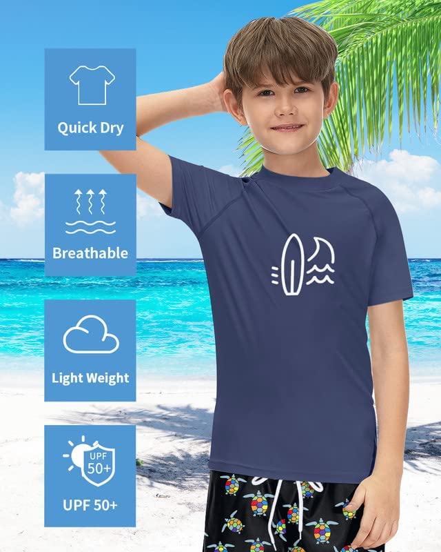 ? Unique design - This boy's rash guard shirt features raglan short sleeves design for a cool, whimsical look. With crewneck designs, this boy's swimwear top makes for easy on/off.