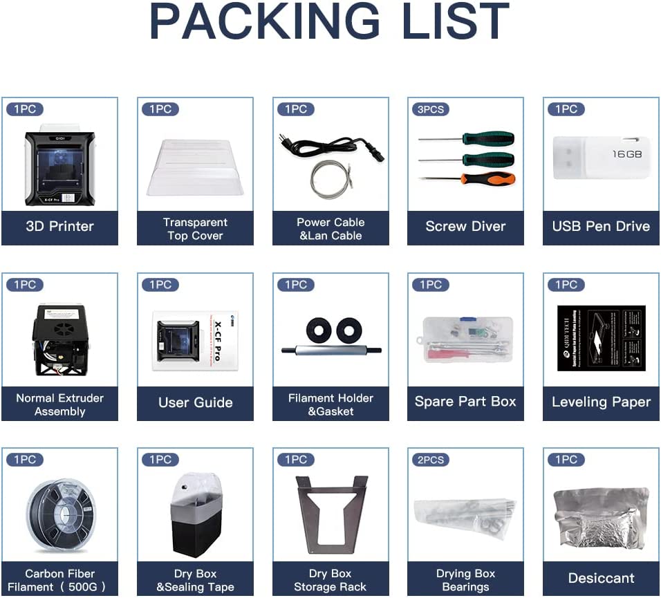 【QIDI TECH Service】QIDI TECH are committed to making valuable 3d printers. X-CF Pro is suitable for professional users as well as novice users.No assembly,out of the box. It is easy to print according to the operating instructions. The highly praised service of QIDI TECH is the most trustworthy. 2 year warranty(1 year + 1 extra year).