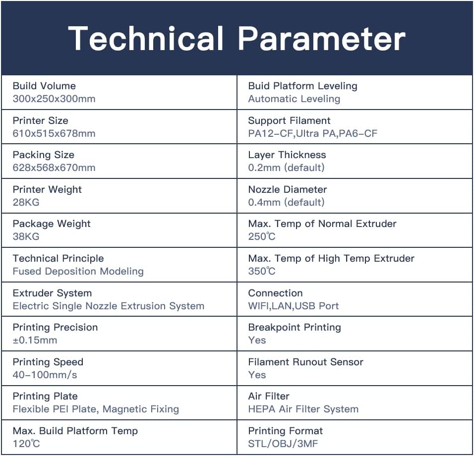 【Precision Manufacturing Process】QIDI TECH using industrial-grade manufacturing, dual z-axis and industrial guide, can achieve high precision, fast printing. Upgrading the XYZ structure, all use of industrial slides. PEI printing plate, solve printing models warp and other problems.The 3d printer’s structure is developed for the effective and accurate printing of carbon fiber.Meanwile, printing other common filaments, the speed can be increased to 120cc per hour.