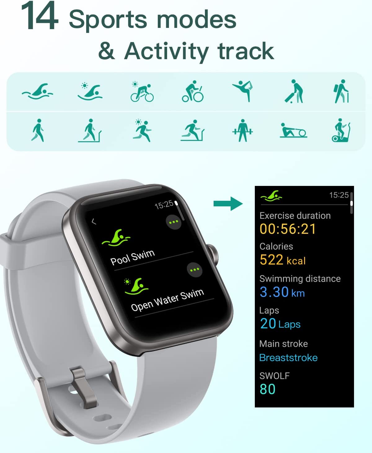 【Activity & Fitness Trackers】- The fitness tracker watch features a 1.7-inch full-touch high-definition color screen, giving you a different visual experience. Supports up to 20 sports modes, it can accurately record your daily steps, calories, distance, speed and other data, help you easily grasp the daily sports data.