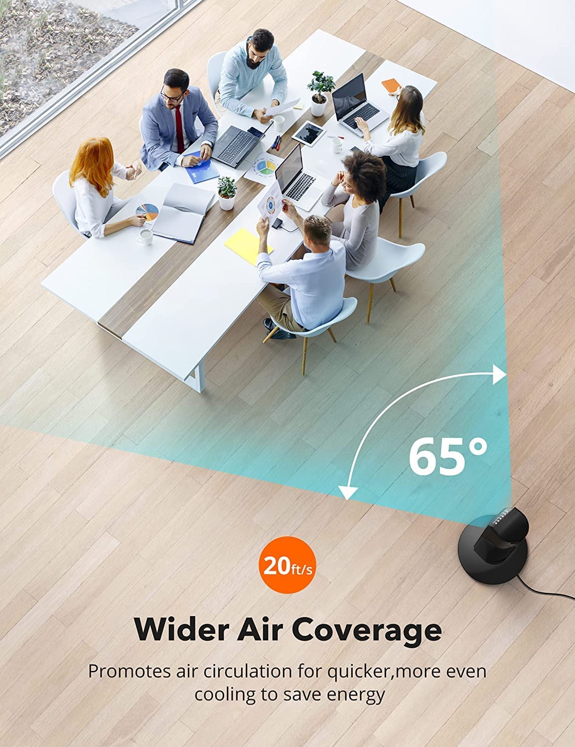 - 65° Oscillation For Wider Air Distribution: Coming with a 65° oscillation feature, the tower fan is able to offer a wider airflow and increase its cooling effects, so it can provide a refreshing experience to your entire family. For even better results and less energy waste, you can pair your fan with your air conditioner to accelerate the air ventilation and attain a more balanced room temperature.