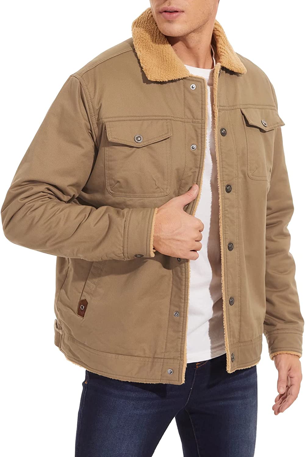 - [Keep Warm] The cargo jackets with turn down collar and warm sherpa lining, keeping you warm in cold winter.