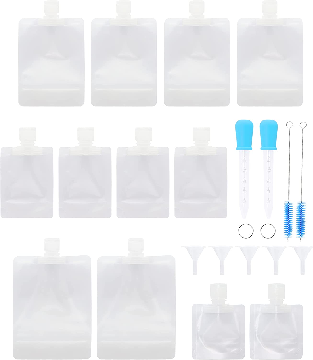 【Package Included】The package contains 12 empty plastic packaging bags (including: 200ml 2 pcs, 100ml 4 pcs, 50ml 4 pcs, 30ml 2 pcs), label paper 1pcs, droppers 2pcs, funnels 2pcs, brushes 2pcs, iron rings 2pcs, essential for daily life, travel, business trip, etc.
