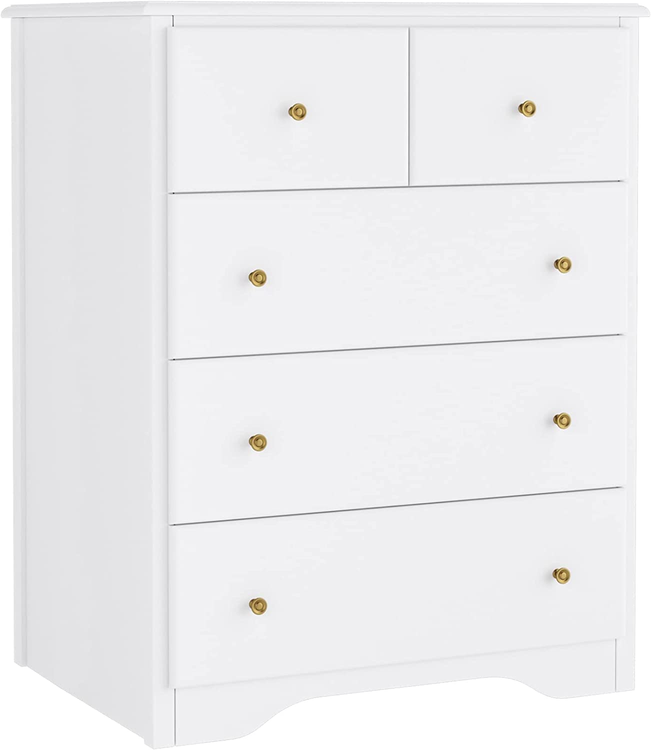 HOUSUIT Dresser with 5 Drawers, Modern Dressers for Bedroom, Wide Chest of Drawers Clothes Organizer, Wooden Nightstand for Living Room, Closet, Hallway, White