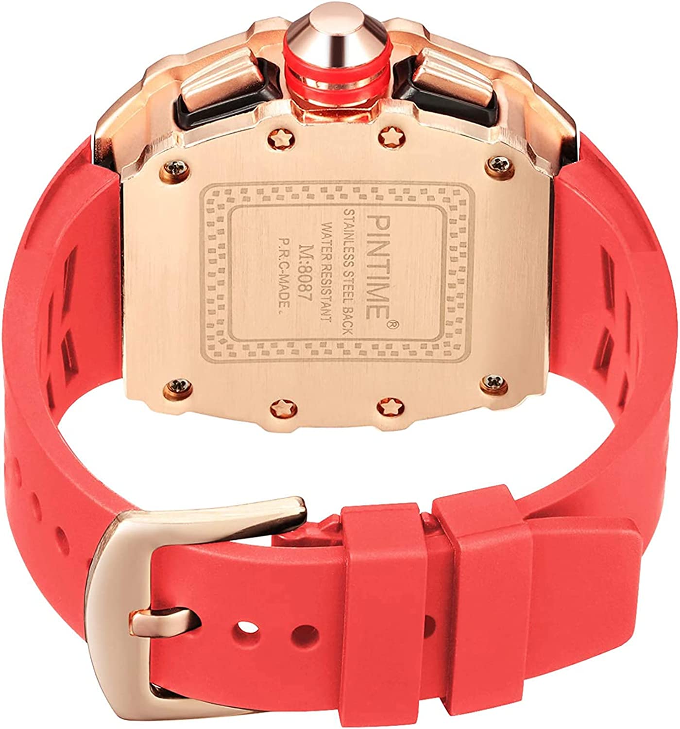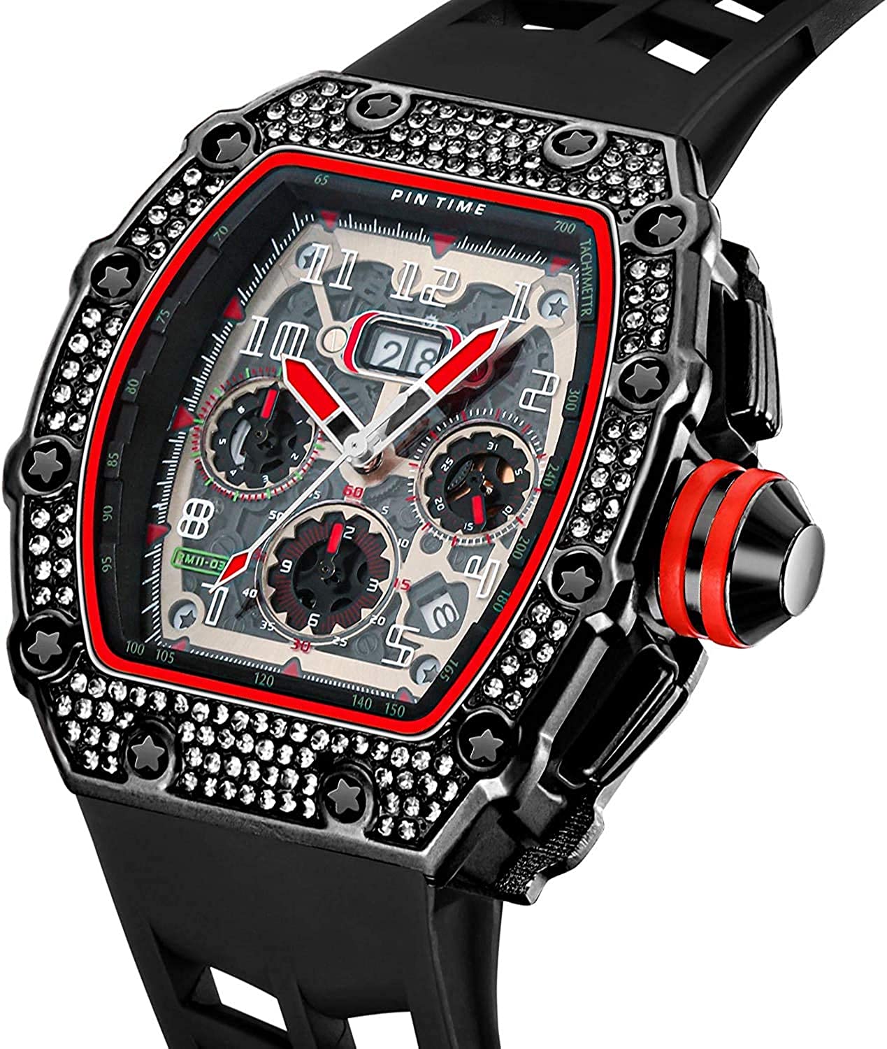 Gosasa Mens Diamond Watches Luxury Tonneau Watches for Men Analog Watch Chronograph Calendar Date Men’s Dress Business Work Watch Large Rectangle Face Wristwatch with Silicon Strap