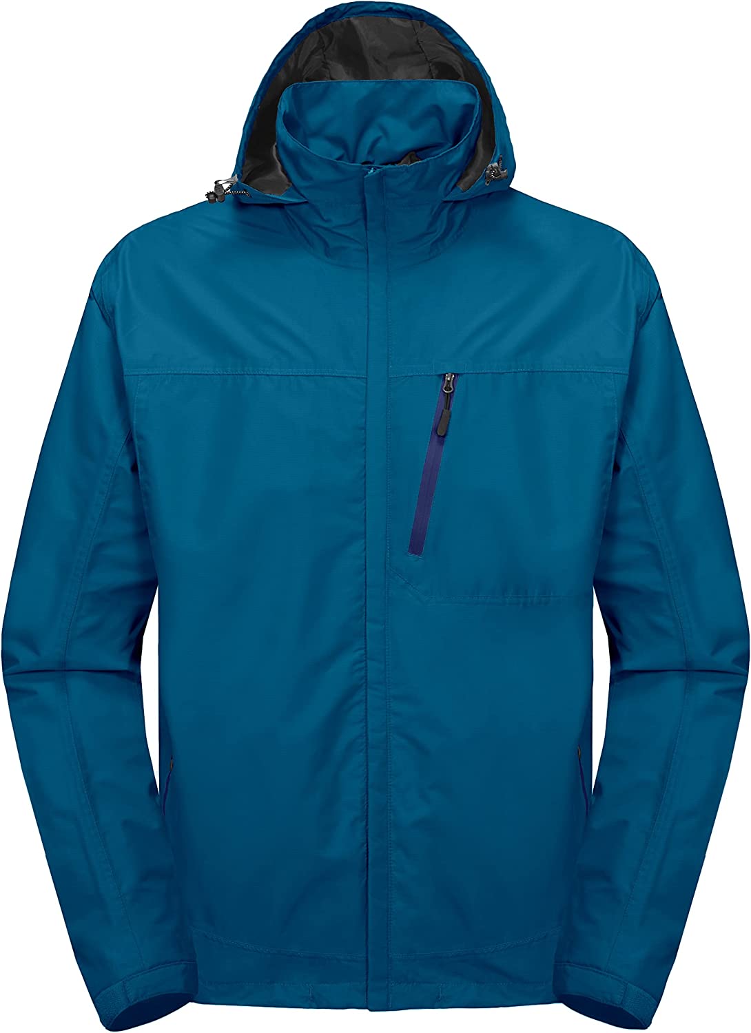 WINDPROOF WATERPROOF JACKET: This mens hooded rain jacket is made of performance windproof and waterproof material, features Waterproof/Breathable Fully Seam Sealed, performs well in windproof and waterproof, keep you dry and comfortable in light rainy day. But We Do Not Suggest to Wear It In Heavy Rain