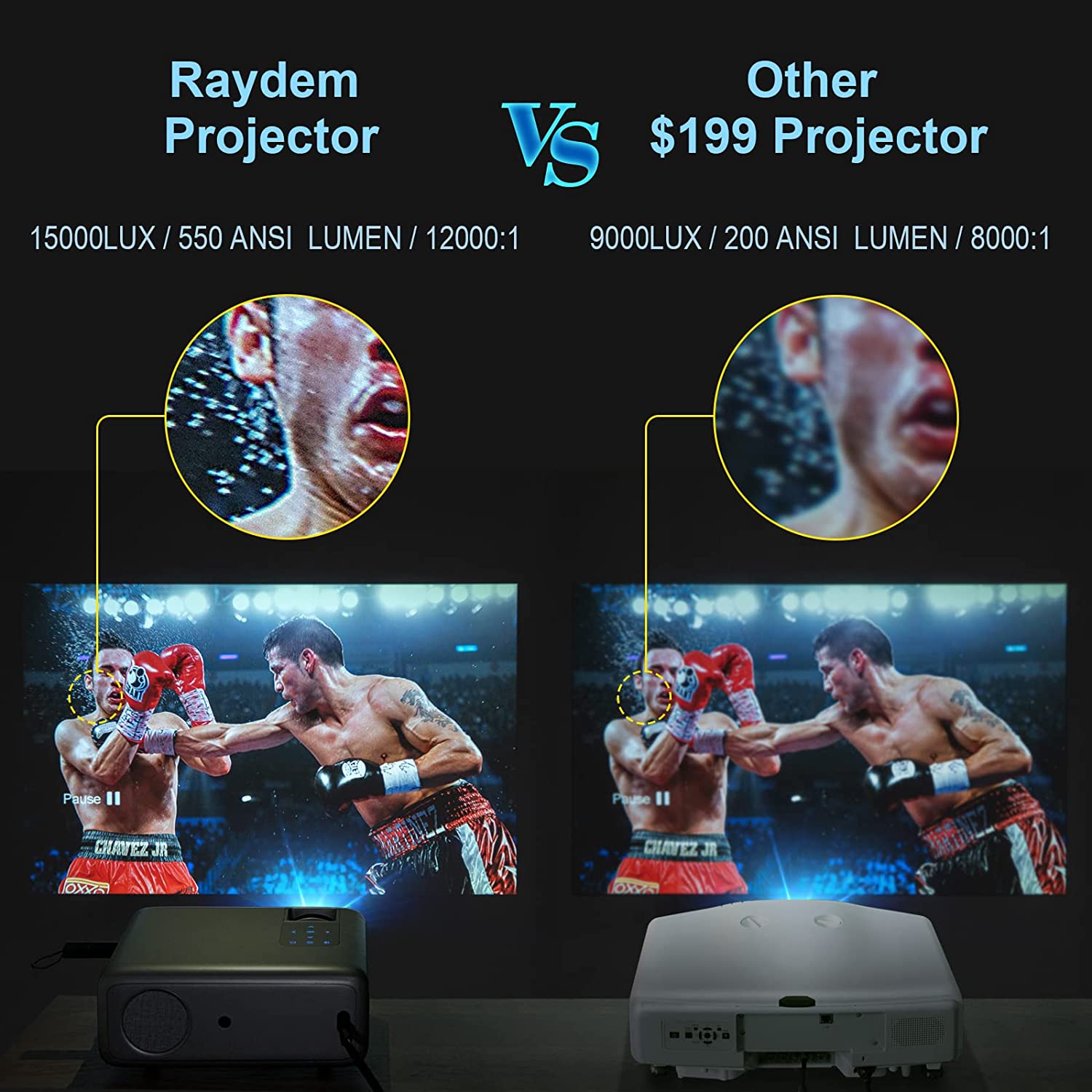- ?【Native 1080P, 15000L & 550 ANSI Lumens, 4K supported】 2023 upgraded WiFi projector, using the original physical resolution of 1920x1080, has 3 layers of refractive glass lenses. Compared to our competitors who use single layer lenses, we use multi-layer refractive glass lense technology to reduce projecting blurry edges on screen. Its display is calculated to render sharper resolution to the full screen. It has 550 ANSI lumens, much brighter and more colorful than other 1080p projectors.