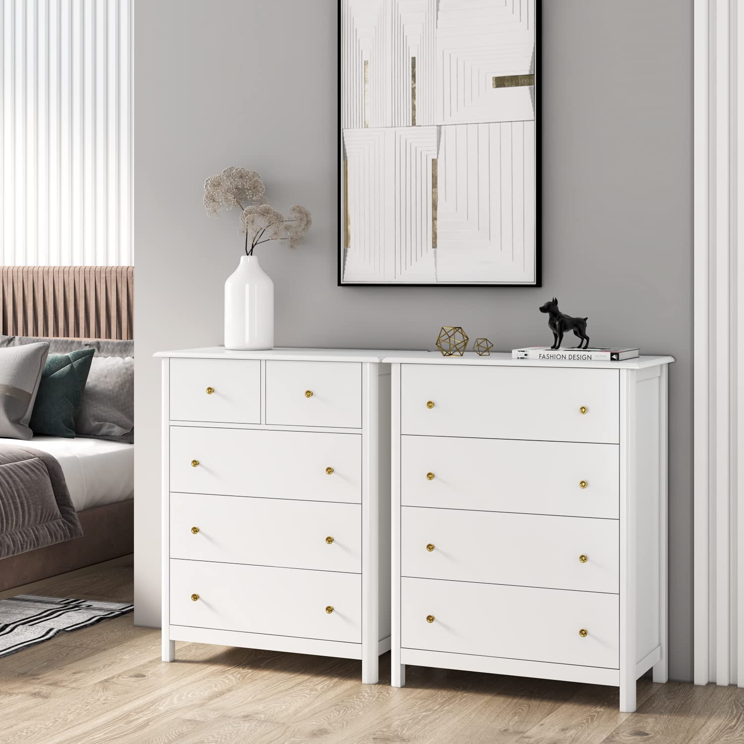 HOUSUIT Drawer Chest, 4 Dresser Chest of Drawers, Clothes Storage Cabinet with Drawers, Modern Dresser for Bedroom, Hallway, Living Room, Nursery, White