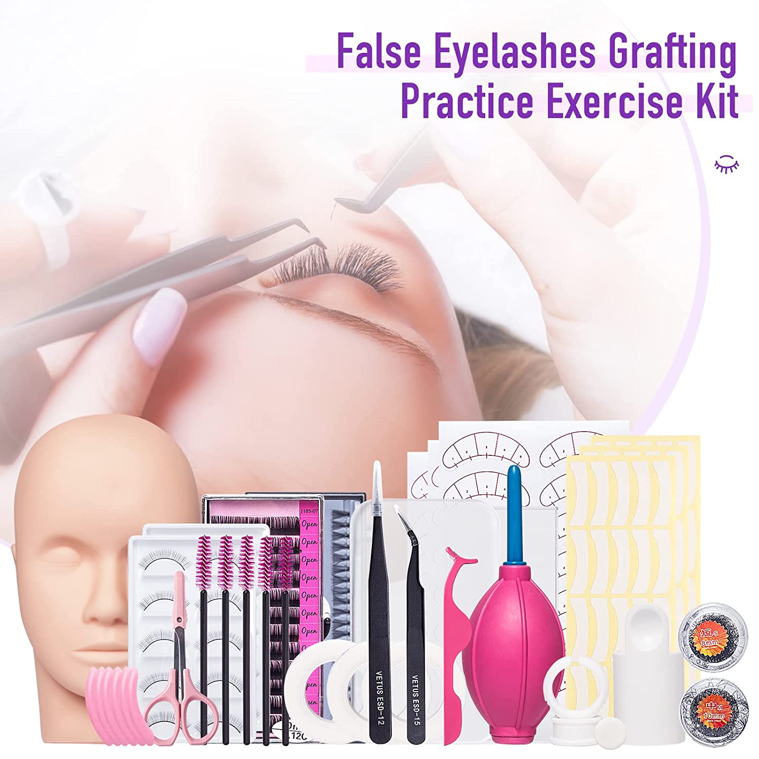 Mannequin Training Head False Eyelashes Extension Practice Set Make Up Eye Lashes Train Model Graft Kits for Professionals & Beginners