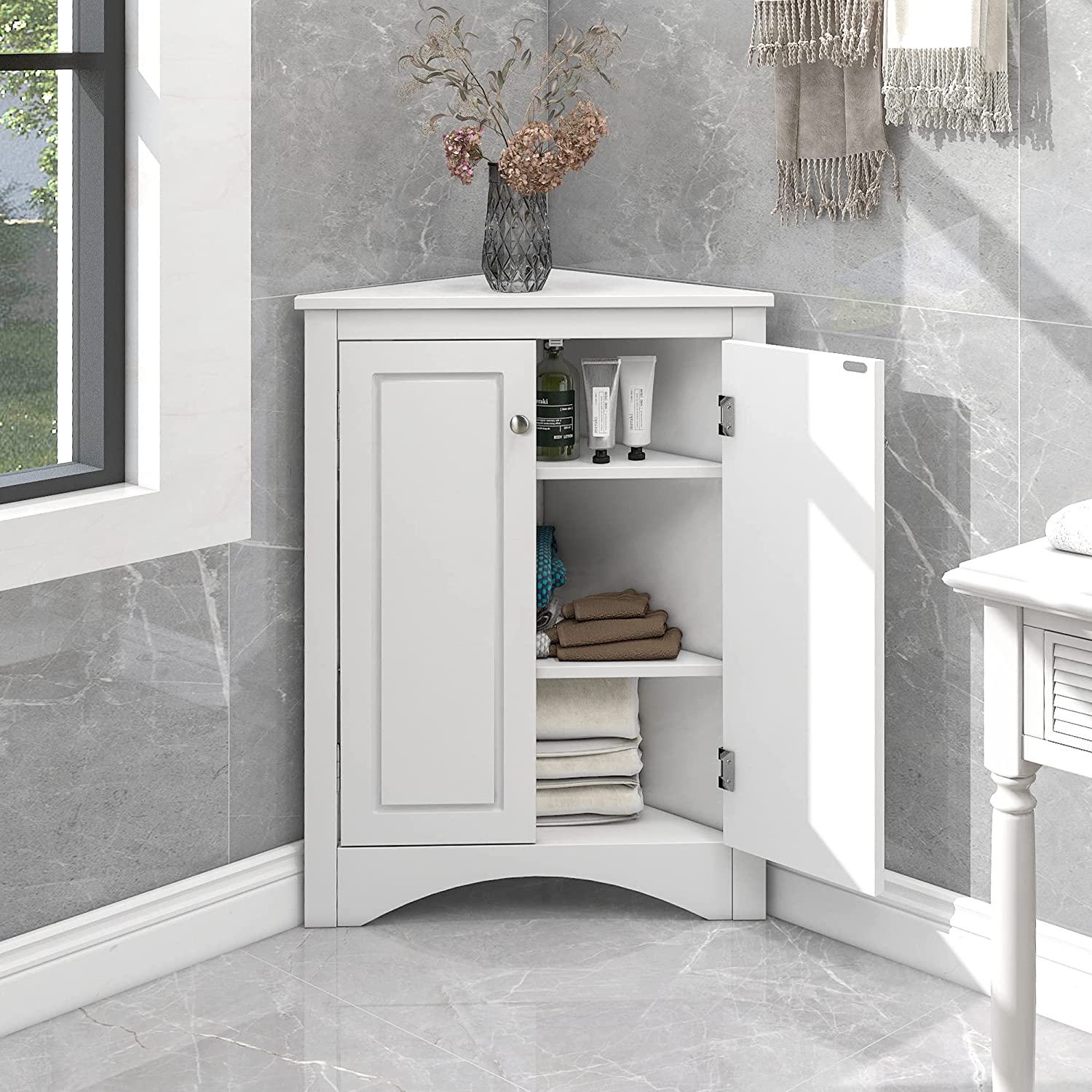 ★CORNER CABINET: A corner cabinet is a perfect neccesity for your storage needs. Put it exactly in the corner, and you will not worry about occuping any of your room. Besides, it provides extra space to store some essentials.