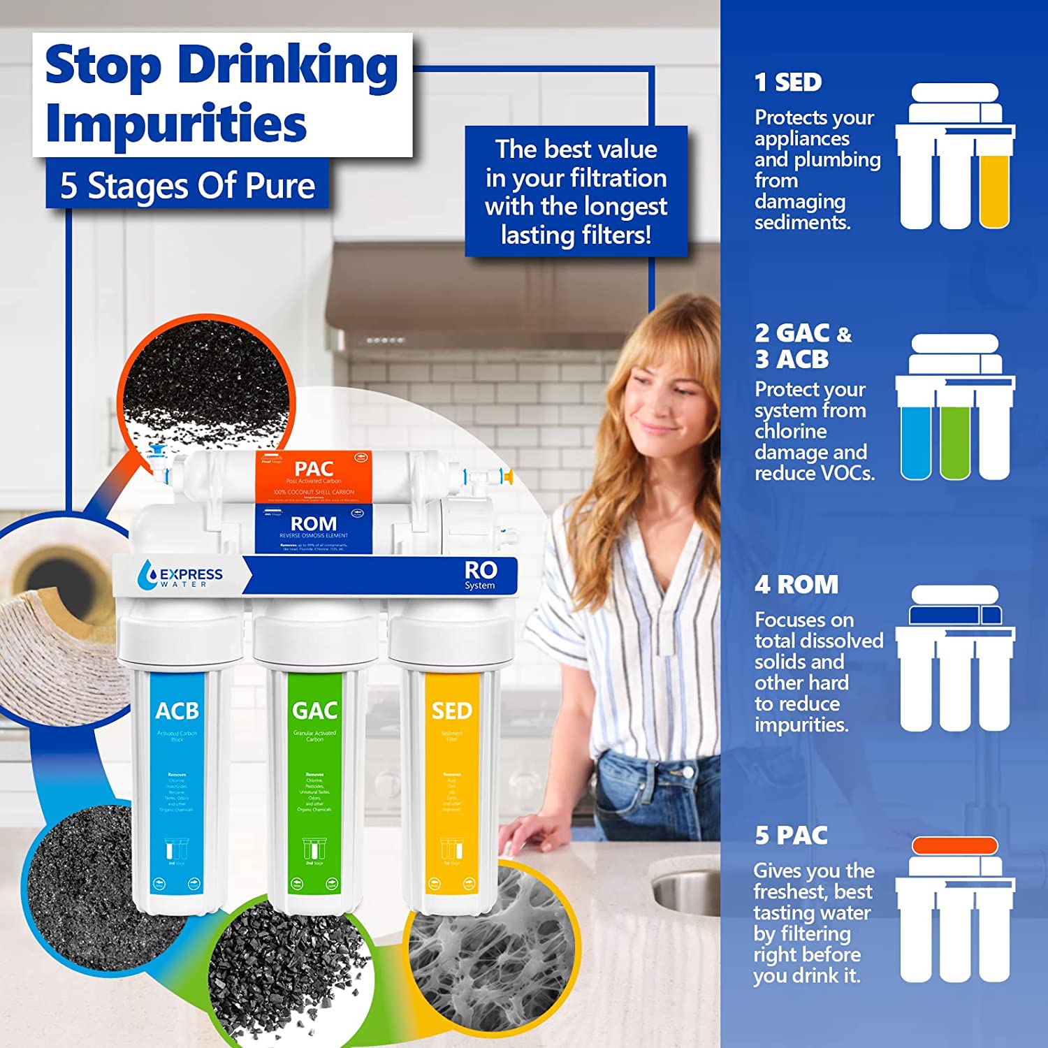 Start drinking healthy and stop drinking impurities with your own home Reverse Osmosis Water Purification. Express Water offers the highest impurity reduction rated RO Membrane for up to 99% reduction of major water impurities.